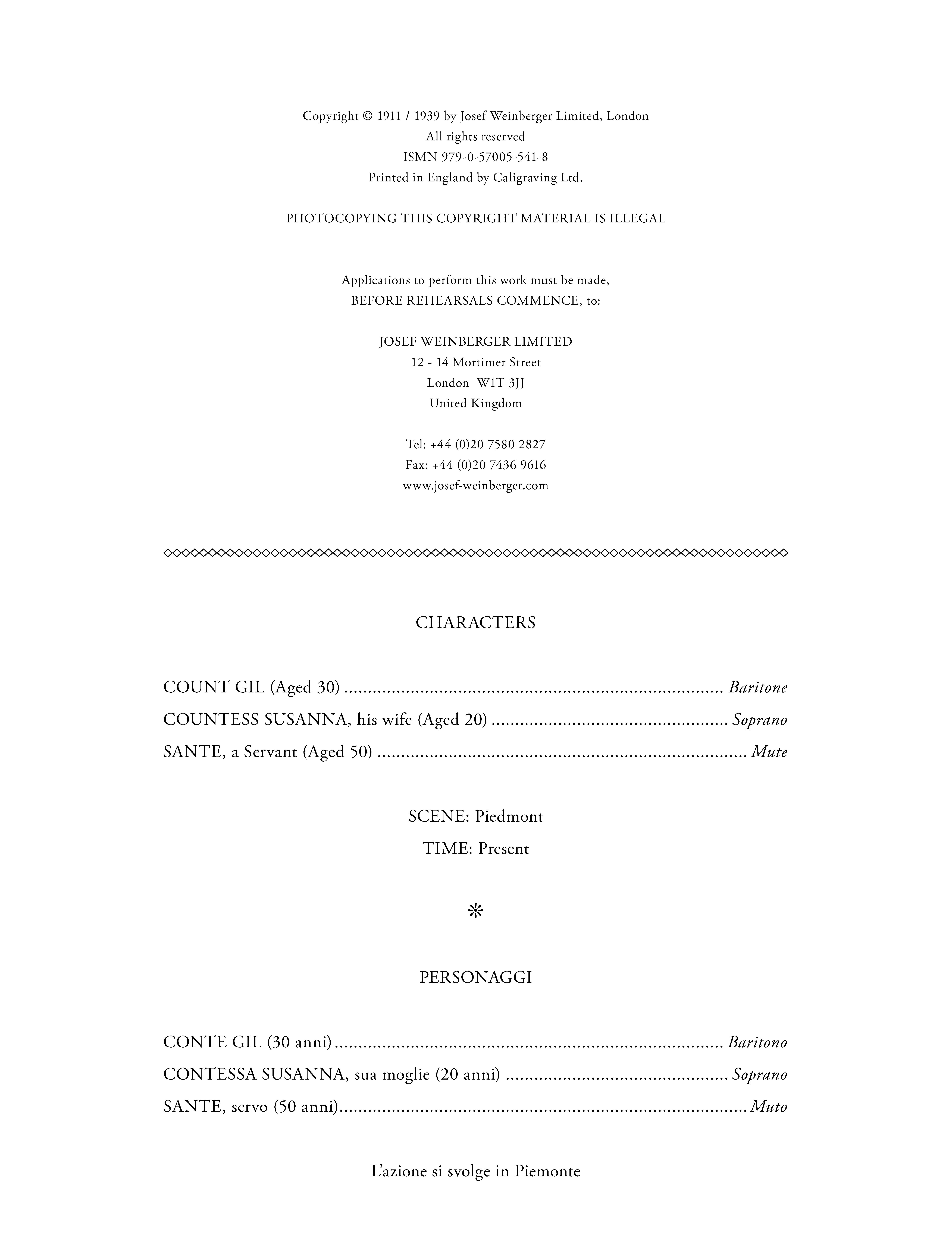 Wolf-Ferrari, Ermanno – Il Segreto di Susanna – Vocal Score [It/Eng] by Josef Weinberger - Issuu