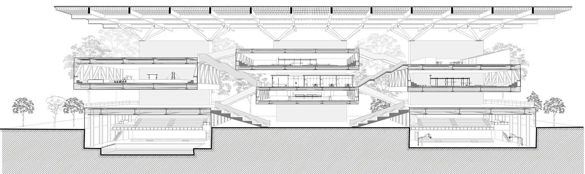 The Project becomes a large twostory showcase where the relationship between users and passers-by is evident, creating an atmosphere of star within a busy area of office workers.