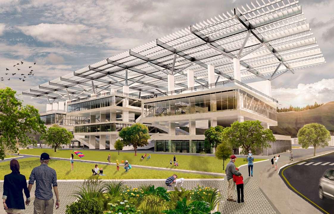-Pasified road, to give priority to the pedestrian -pedestrian paths within the park -universal circulation inside and outside the project by means of a ramp, escalators and an elevator to connect the spaces.