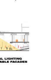 Se aprovechan las terrazas existentes, para generar h urtas y arborizar c on e species endémicas d e la z ona. La forestación se d a de m anera progresiva con la ntención de desarrollar un b osquecillo e n pendiente que permita albergar a aves de la zona.