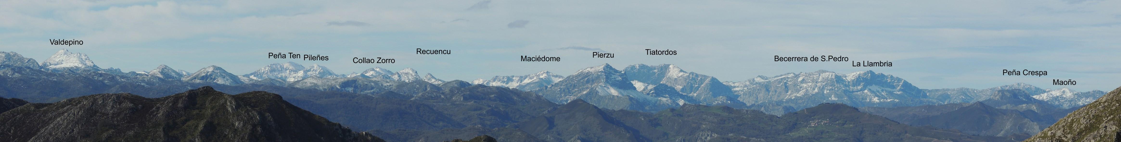 próxima al mar por su parte norte a la altura de Ribadesella, es una excelente atalaya hacia toda Picos de Europa y más al oeste una buena parte del Cordal de Ponga.