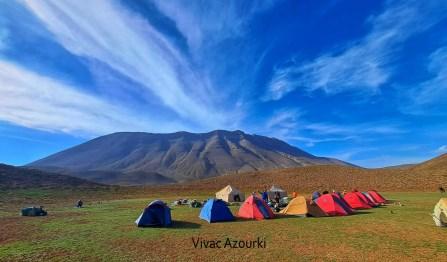 Después de “un picnic de lujo” como decía nuestro guía Mohamed en la aldea de Ifrane, realizamos la aproximación vespertina hasta el Plateau de la cara sur del ADRAR AZOURKI (3.682 m) junto al Lago de Izourar a 2.530 metros, sin duda alguna uno de los mejores lugares para acampar.