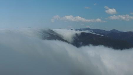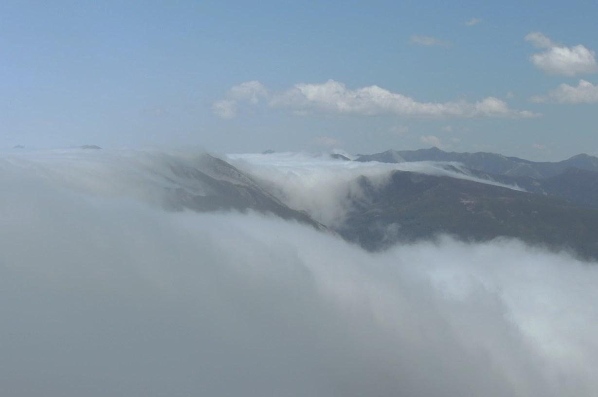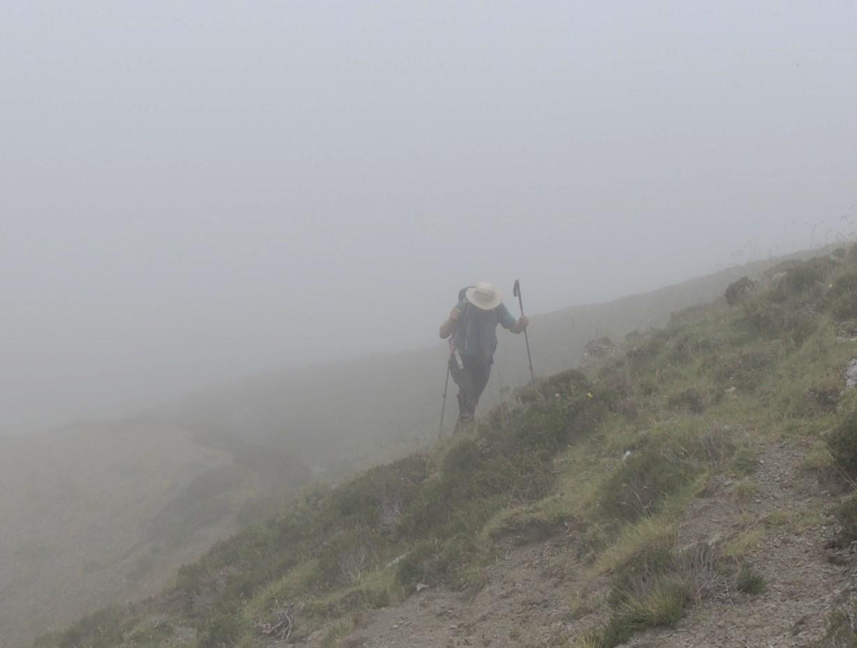 Lejos de mejorar, el tiempo se recrudece cerca de la cumbre y en los primeros km de la bajada hacia el valle de Viadangos.
