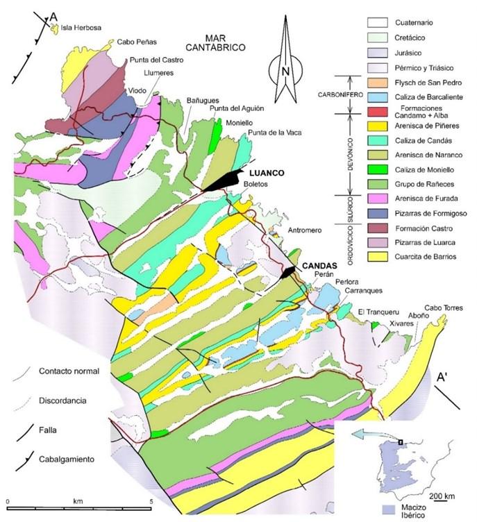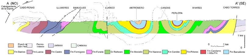 En la Fig. 3 se representa un mapa geológico y un corte a través de la región de cabo Peñas.