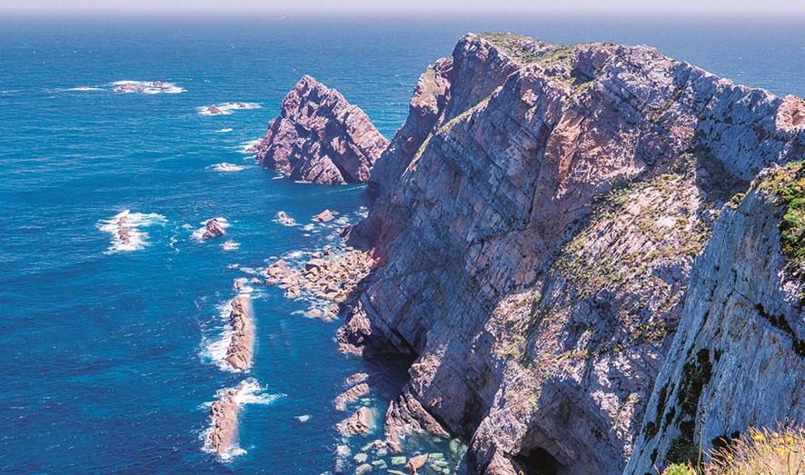 Fig. 1.- Espectacular afloramiento de la Cuarcita de Barrios, de edad ordovícica, en el cabo Peñas