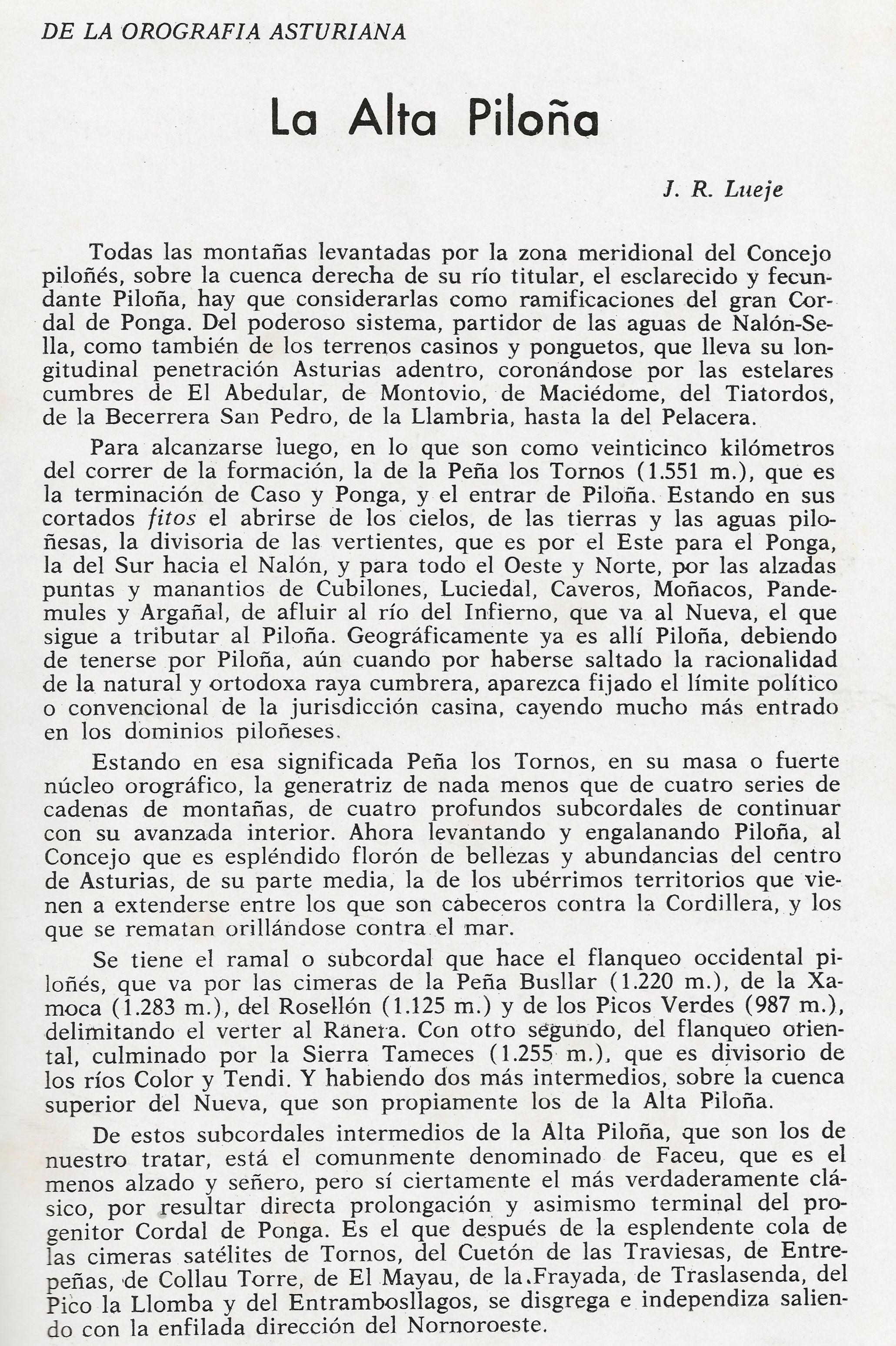 La Alta Piloña, artículo de J.R.Lueje publicado En la revista Torrecerredo en diciembre de 1975. Pag 5