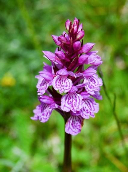Las Dactilorizas son bastante reconocibles, la flor tiene los dos pétalos por encima del labelo que parecen las alas de un ave echándose a volar.