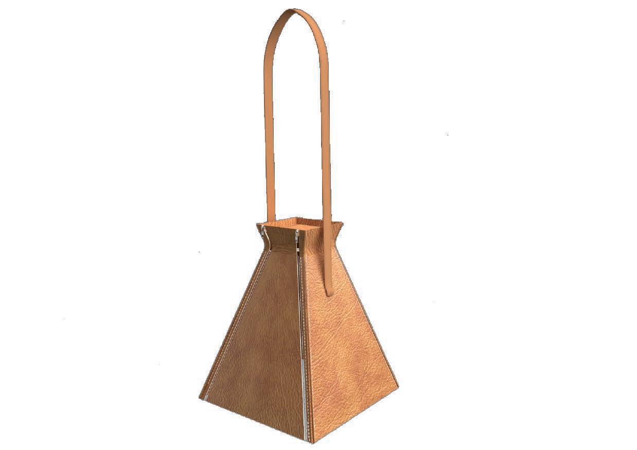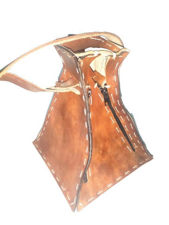 Con el trabajo de talabarteria que maneja el artesano en sus productos, creamos estos dos diseños de bolsos con el objetivo de presentar un producto que encaje más en el mercado actual y su trabajo gane valor en el campo del diseño de moda mexicano. Los bolsos tienen un cuerpo geométrico usando triángulos y prismas. Se realizó un prototipo real del bolso y se desarrolló una identidad de marca para el artesano.