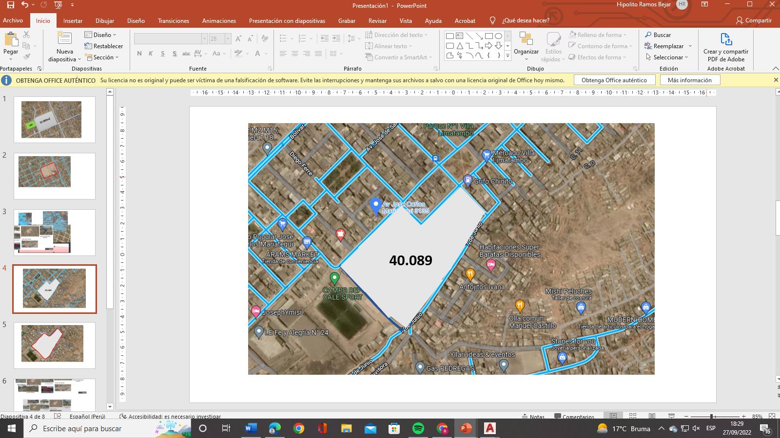EL TERRENO 1 Tiene un desnivel notable mayor al 15% Av.Jose carlos mareategui 3135 San Gabriel Fuente : Adaptada