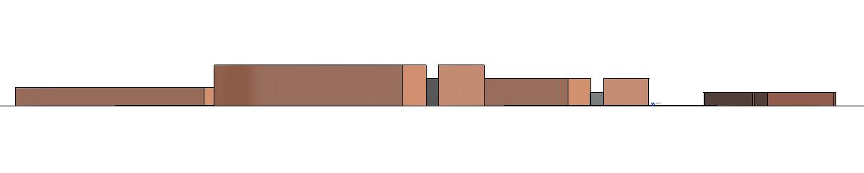 El conjunto de espacios se interesa a las edificaciones con una circulación que se desarrolla transversalmente a los pabellones