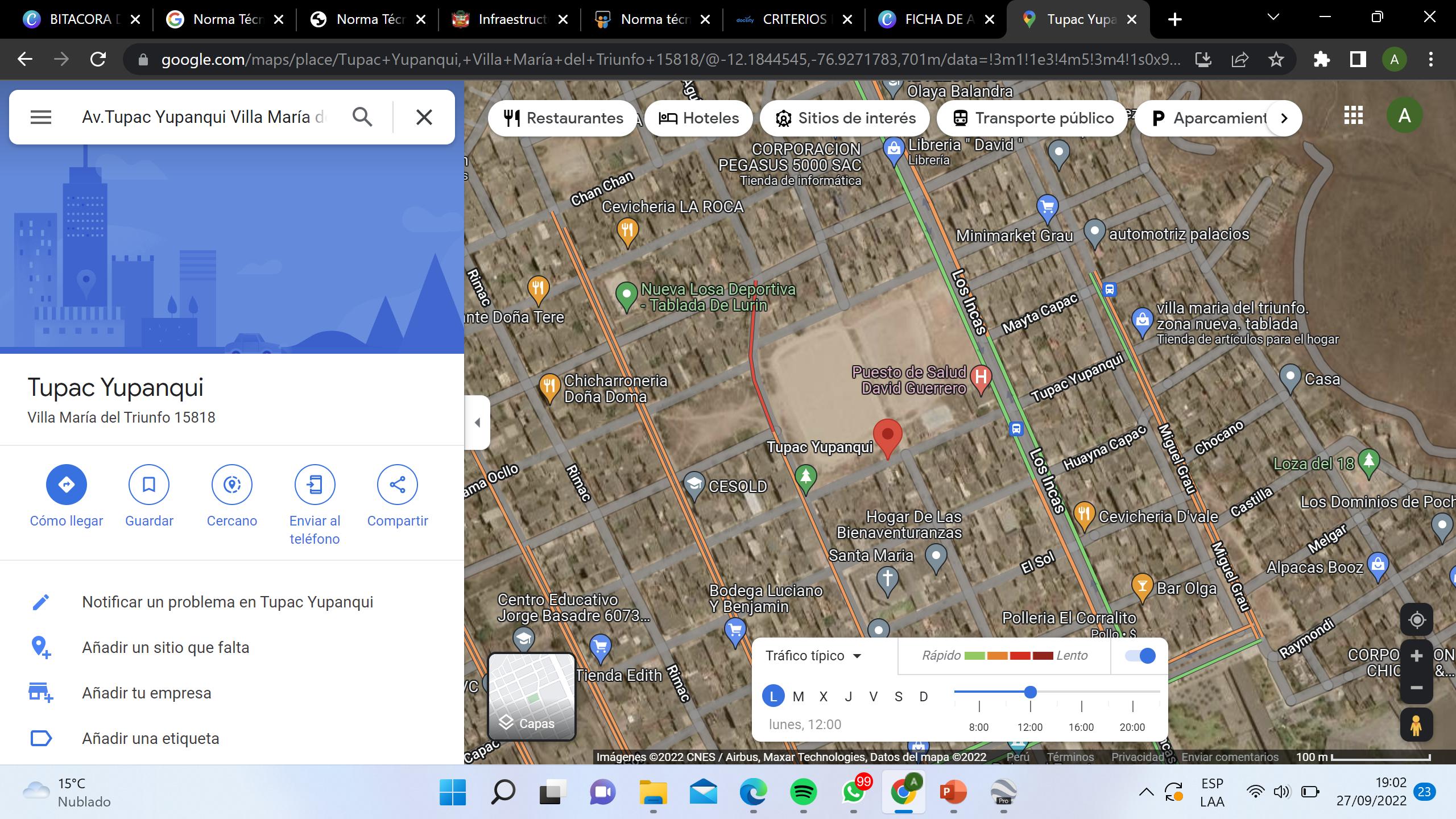 Ubicación: FICHA DE ANÁLISIS DEL TERRENO 2 CONTEXTO DEL ENTORNO Tiene un desnivel breve menor al 15% Av.Tupac Yupanqui Villa María del Triunfo 15818 Fuente : Adaptada