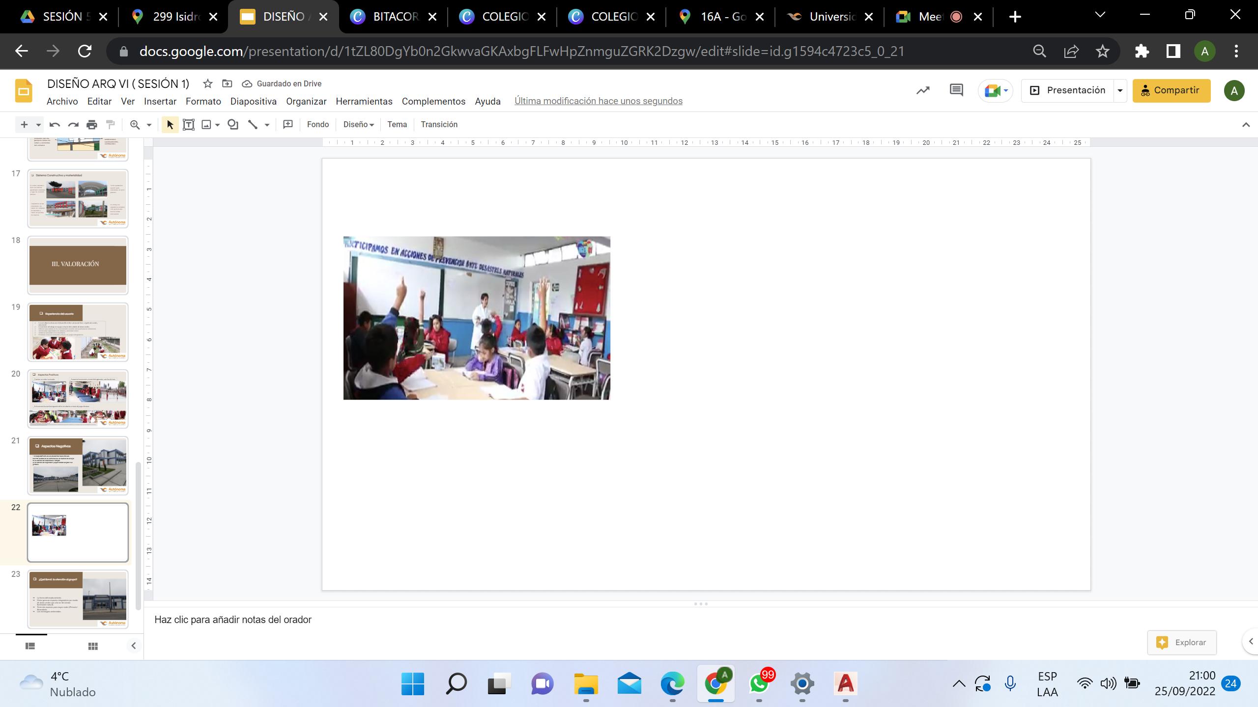 ASPECTOS POSITIVOS SISTEMA CONSTRUCTIVO: DESCRIPCIÓN: El centro educativo tiene un sistema aporticado columnas y vigas de concreto armado Carpintería en las coberturas, los vanos de ventanas de aluminio y vanos de puertas de madera Techo parabólico Aluzinc para coberturas de luces grandes Se incluye la carpintería metálica esto genera una nueva escala renovadora 1. El desplazamiento de los estudiantes hacia otra aula. 2. El mal cuidado de los elementos de los recursos del colegio. 3. No cuentan con ascensores . 4. No cuentan con seguridad ni juegos recreativos para nivel primaria. ASPECTOS NEGATIVOS: Cuentan con aulas funcionales