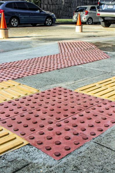 Buena circulación a travez de areas verdes. Estacionamiento subterraneo Las areas verdes estan alejadas de calles avenidas. Cuentan con 3 tipos de losas ASPECTOS POSITIVOS: ASPECTOS NEGATIVOS: No cuentan con pisos pedotáctiles lo cuál impiden ,un facil acceso para personas discapacitadas.