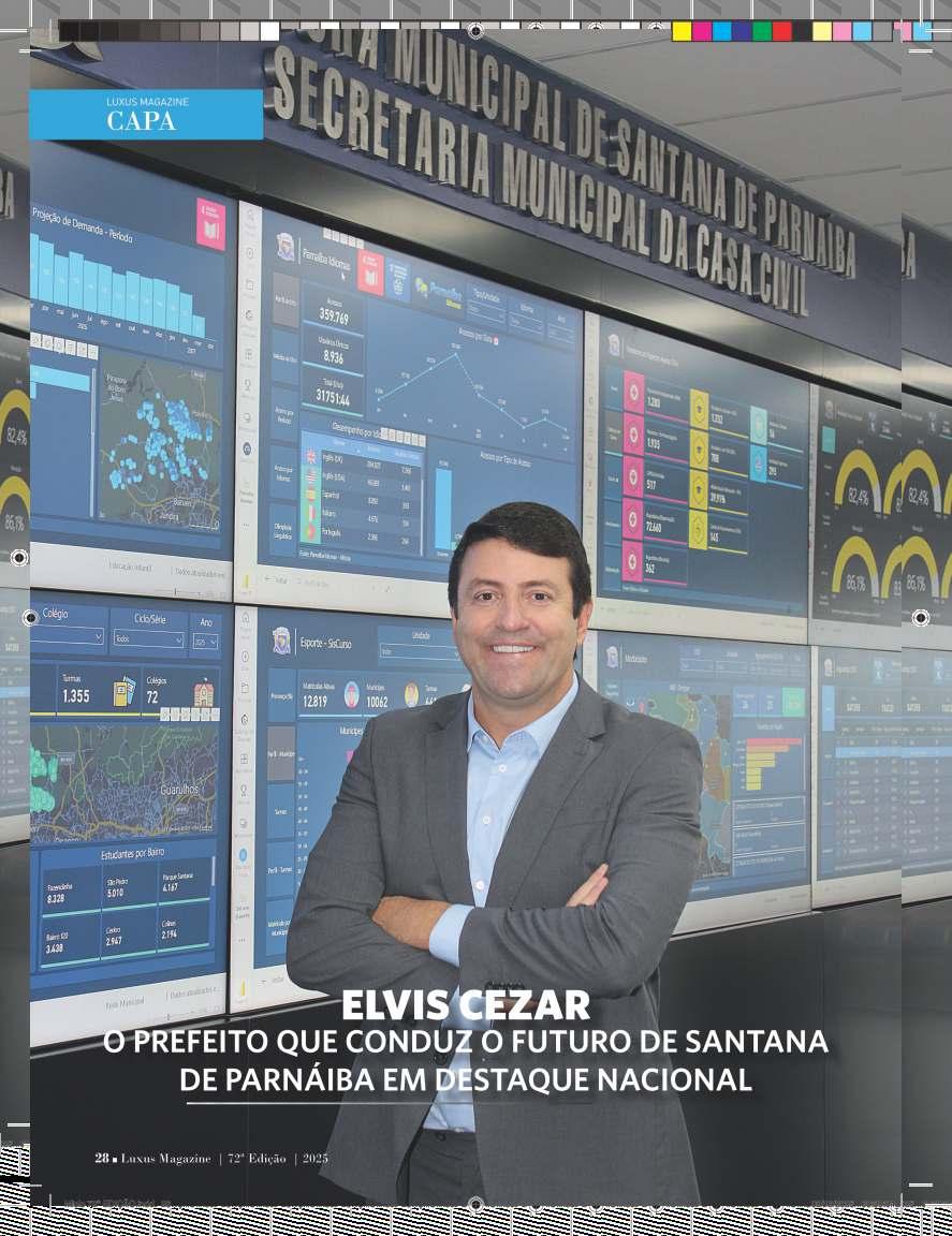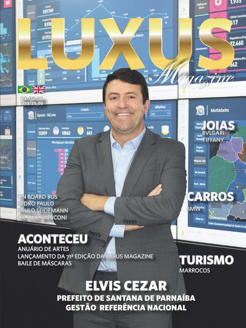 Apresentamos com satisfação a edição deste mês da Luxus Magazine, abordando inovação, desenvolvimento e inspiração. Destacamos o prefeito Elvis Cezar de Santana de Parnaíba, cuja liderança marca uma gestão transformadora.