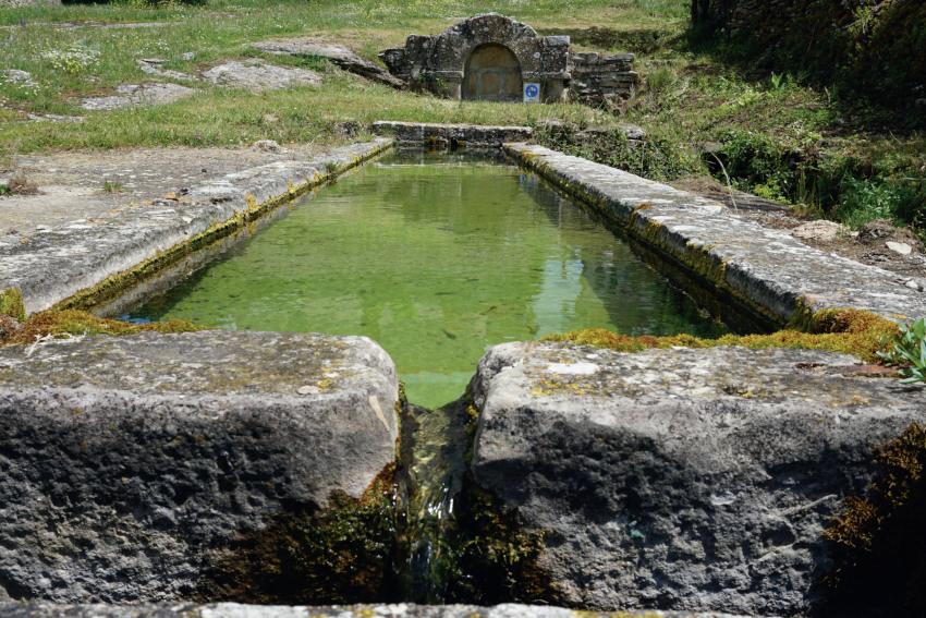 apariencia de casa. Enfrente de este conjunto hay otra fuente con una pilastra en el centro de un abrevadero o estanque ovalado sobre el que varios caños vierten agua.