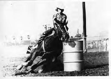 LEFT: A cowgirl is barrel racing her horse, Bunny. Marfa, Presidio County; (https://texashistory.unt.edu/ark:/67531/ metapth39470/m1/1/), University of North Texas Libraries, The Portal to Texas History, https://texashistory.unt.edu; crediting Marfa Public Library.