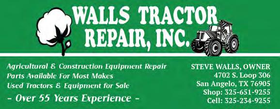 San Angelo 2024 | 13 West Texas Wool & Mohair Association West Texas Wool & Mohair Association www.WestTexasWool.com 325-835-3661 | 109 S. Railroad * Mertzon, TX | Fence Field Ranch Sheffield fence Stay Tuff Fence Barbed Wire Custom Built Gates Steel Products Cement Water Troughs Deer Feeders Panels T-Posts Cedar Stays Cable Stays Fencing Tools NOLA KAYE BAUMANN 325-650-4128 rntrenchinginc@gmail.com Janie Thomas Realtor/Owner James Thomas Broker/Owner 3121 Southwest Blvd. San Angelo, TX 76904 info@sanangelorealestate.com (325) 942-5478 (325) 277-7653 GET IN TOUCH! Be prepared so you can help save a life! Sav-A-Life Skills CPR/First Aid Training Center American Heart Assoc. & OSHA Recognized Courses CPR/AED/First Aid Training & Healthcare Provider Classes 325-650-2507 • 2141 Office Park Dr., Ste. 6 • San Angelo, TX 76904 email: Grayins@aol.com No advanced registration needed. Special classes for groups or businesses Will travel to site to do classes sav-a-lifeskillstraining.com sav-a-lifeskillstraining.com “SAVE THE DATE” Trailhead to West Texas Sonora Outlaw Rodeo & Sutton County Days August 9 & 10, 2024 205 Hwy 277 North | Sonora, Texas 325-387-2880 www.sonoratexas.org Email:chamber@sonoratexas.org An Event Center for Special Occasions Weddings | Parties | Reunions | Business Meetings Your Complete Steel Service Center Come visit us for your Metal Building Ranch Fencing 6617 S. US Hwy 277 325-651-7322 SUPERIOR PARTS, SERVICE AND PERFORMANCE Heavy Duty Truck Repairs Diesel Engine Repairs Roadside Repairs For advertsiing information contact Lori Summerlin at: 325.262.0303 | Lori@DiscoverWestTexas.com.
