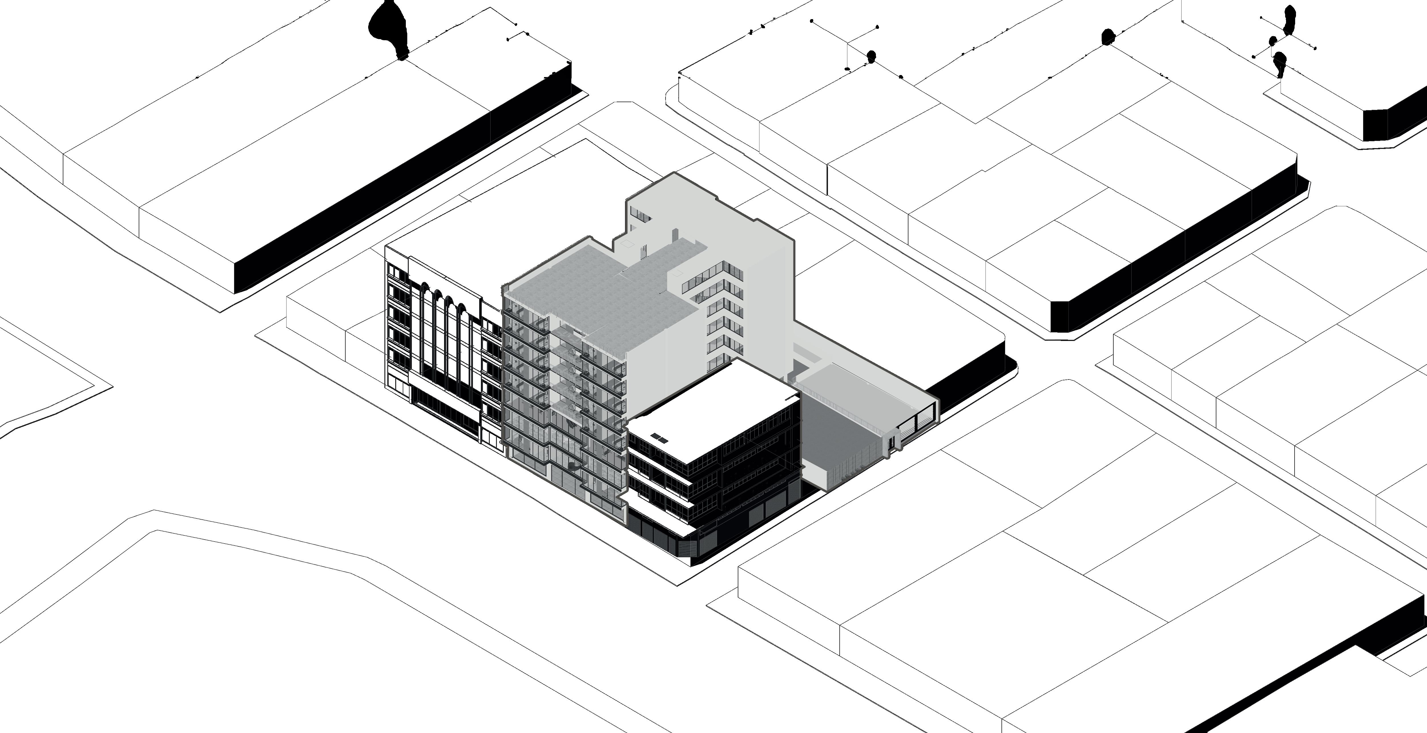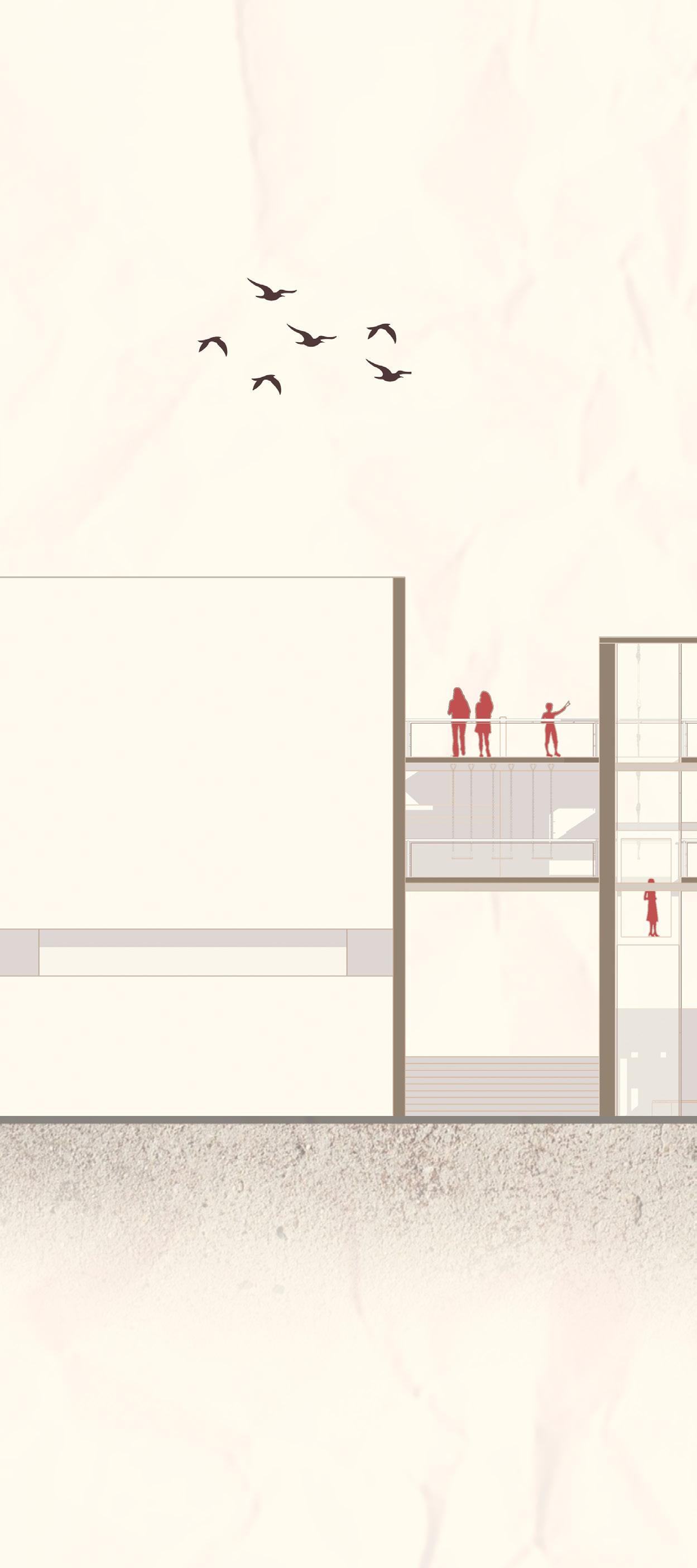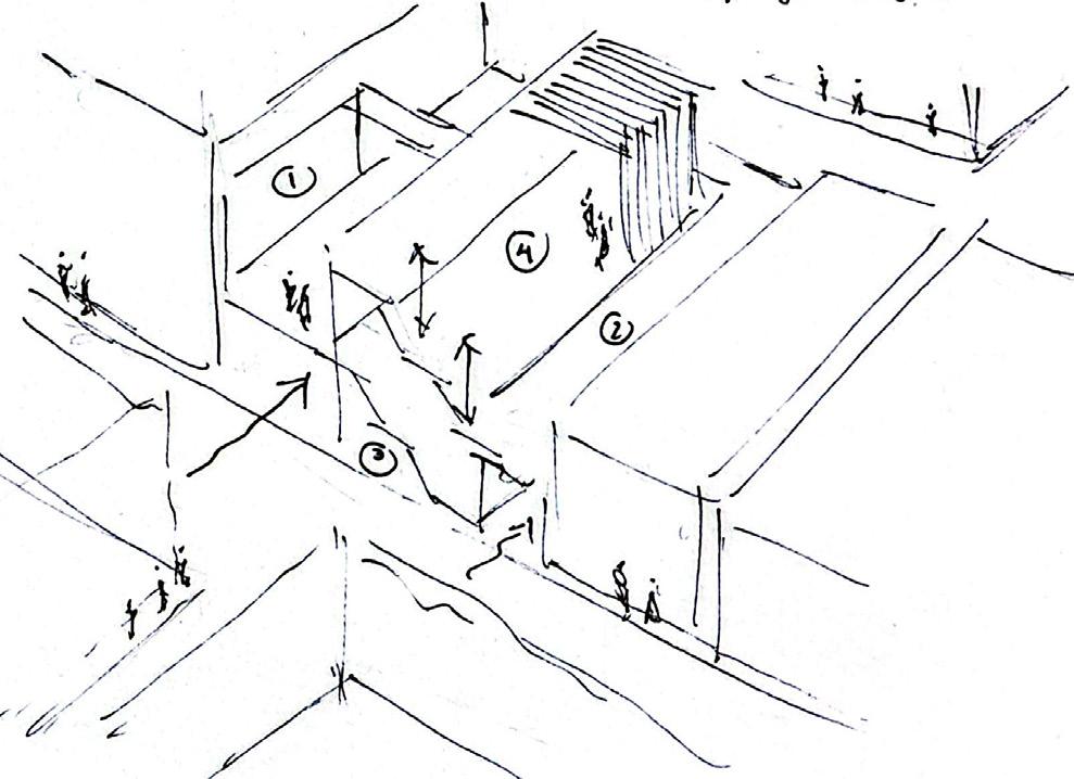 Este proyecto que se encuentra ubicado en la intersección de las calles: Joaquín Lalama y Juan Benigno Vela en el centro de la ciudad de Ambato, está enfocado en la generación de espacios que permitan la conglomeración de diversas actividades dentro de un mismo contexto urbano, promoviendo la interacción social y la continuidad espacial entre lo público y lo privado. La propuesta se fundamenta en el concepto de “umbral urbano”, entendido como un espacio de transición que no pertenece completamente ni al interior ni al exterior, sino que actúa como un punto intermedio de conexión y permeabilidad. De esta forma a través de la disposición de volúmenes, plataformas, celosías y planos suspendidos, se crea una secuencia espacial fluida, donde el usuario experimenta la sensación de “mirar a través de” una transparencia visual y funcional que diluye los límites entre espacios cerrados y abiertos.