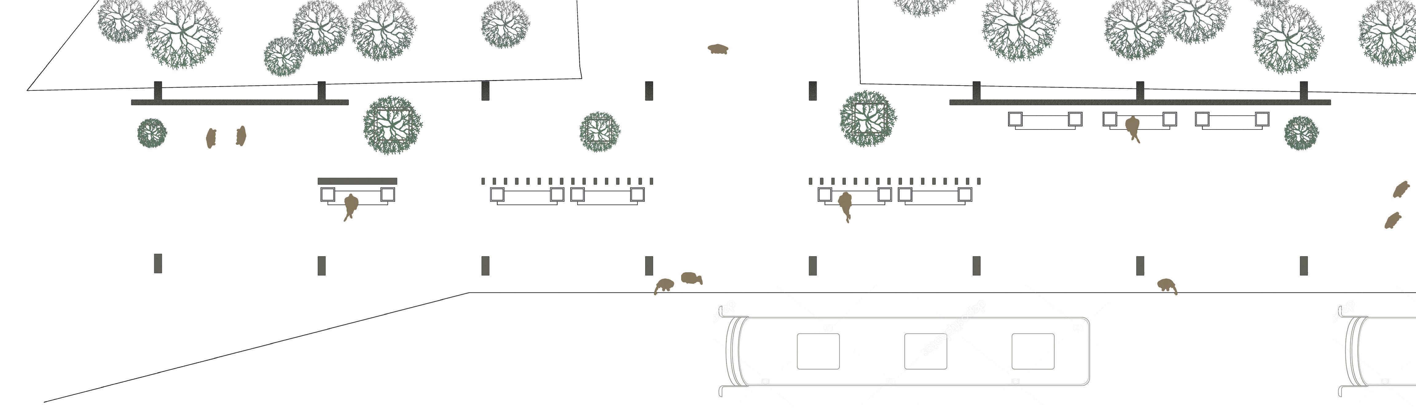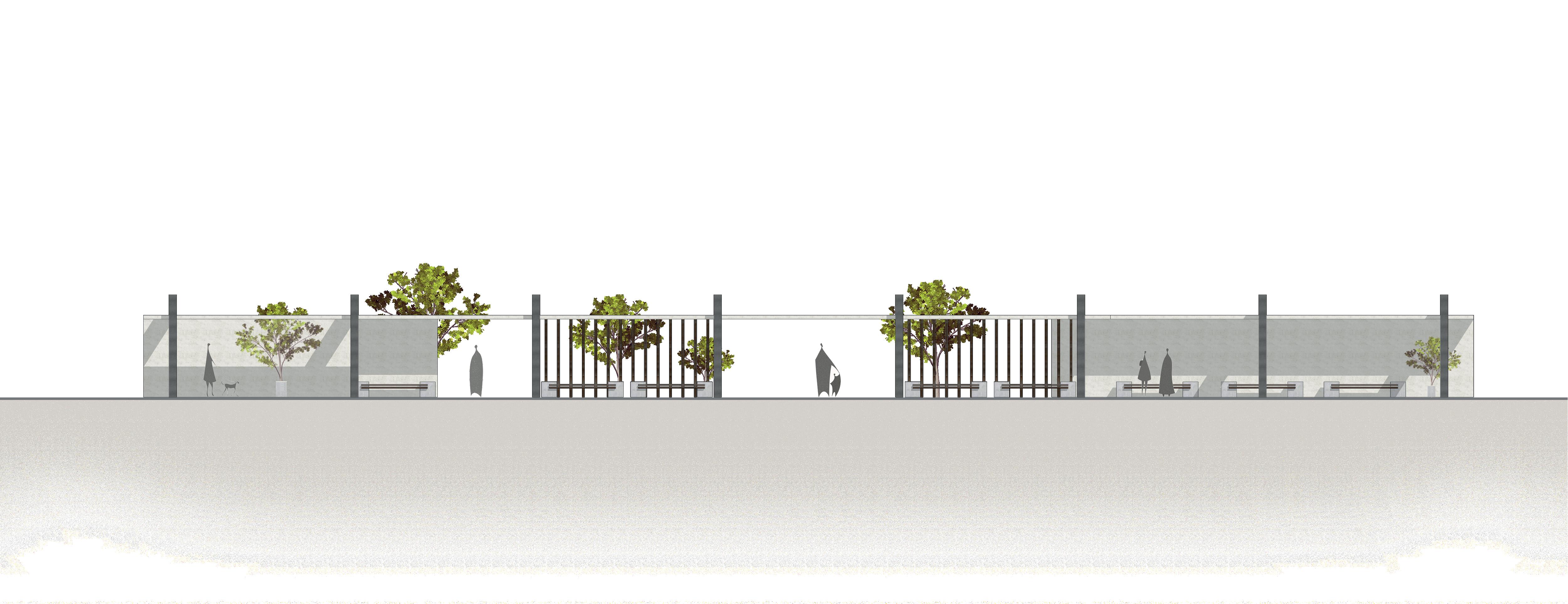El mobiliario urbano, dispuesto estratégicamente, actúa como un elemento estructurador que define y modula las escalas del espacio. De este modo elementos como: bancas, jardineras, luminarias y estructuras de sombra se integran en una composición coherente que promueve la apropiación social del lugar. Estas piezas no son añadidos decorativos, sino componentes funcionales que fomentan la interacción, el descanso y la continuidad visual del recorrido. Su carácter abierto y su lenguaje sobrio permiten que la intervención se lea como una sutura urbana, un gesto de conexión que mejora la accesibilidad, el confort y la habitabilidad del espacio público. En este sentido, el proyecto no solo actúa como un punto de enlace físico, sino también como un espacio de mediación social, donde se genera un enlace de la identidad cotidiana.