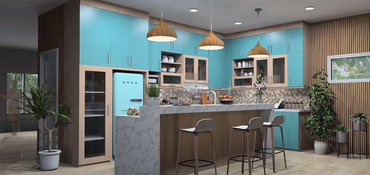 Top and Bottom: Architectural visualizations projects for the 3d modeling class. The one on the top is for the custom kitchen project and the bottom part would be for a commercial project. The two renders on the right are all raw renders from the Revit Cloud from the intermediate Revit class.