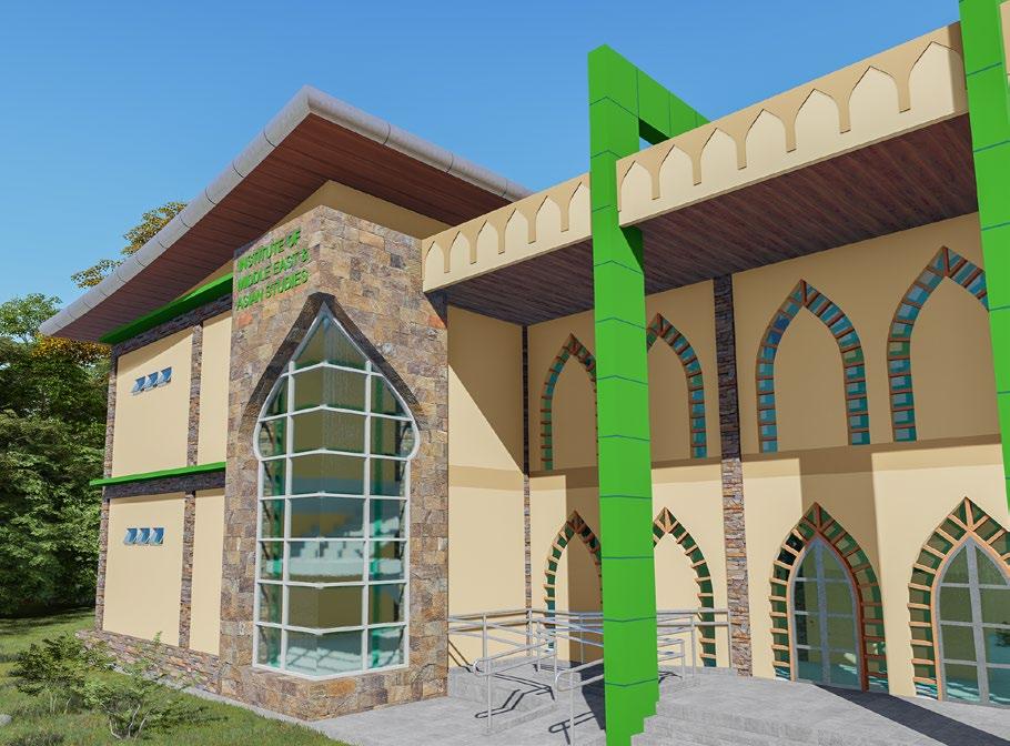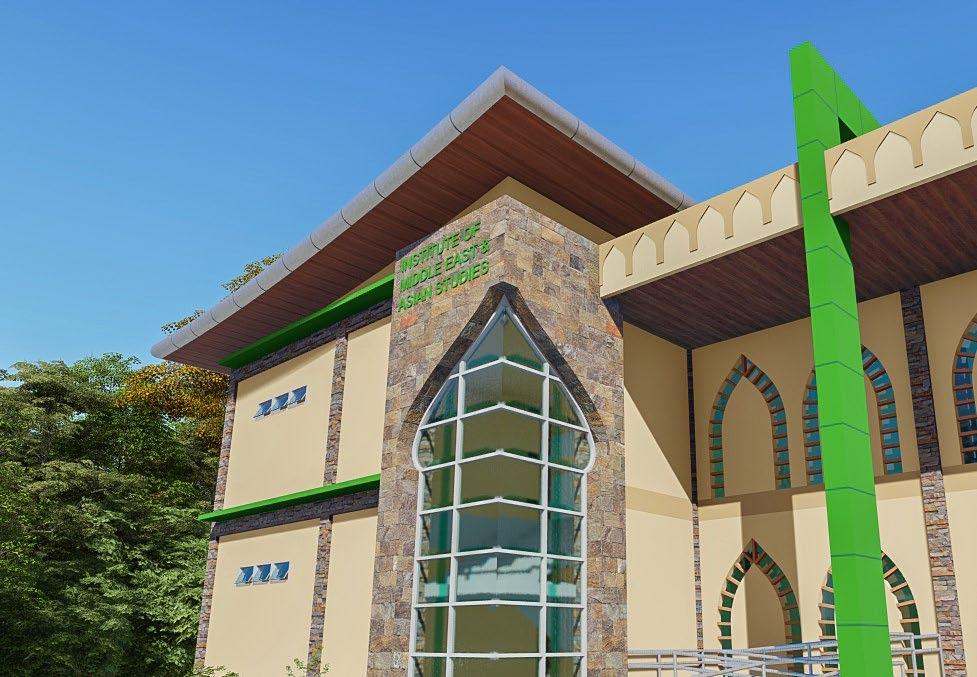 The new building of the Institute of Middle-East and Asian Studies (IMEAS) is a 2-storey structure which will be the new home of the college. Two offices and eight standard-sized lecture rooms are found in the building. To complement the existing Mosque-like building of the college, Islamic architecture influences and patterns are evident in the façade of the building like arch patterns and arch-shaped windows.