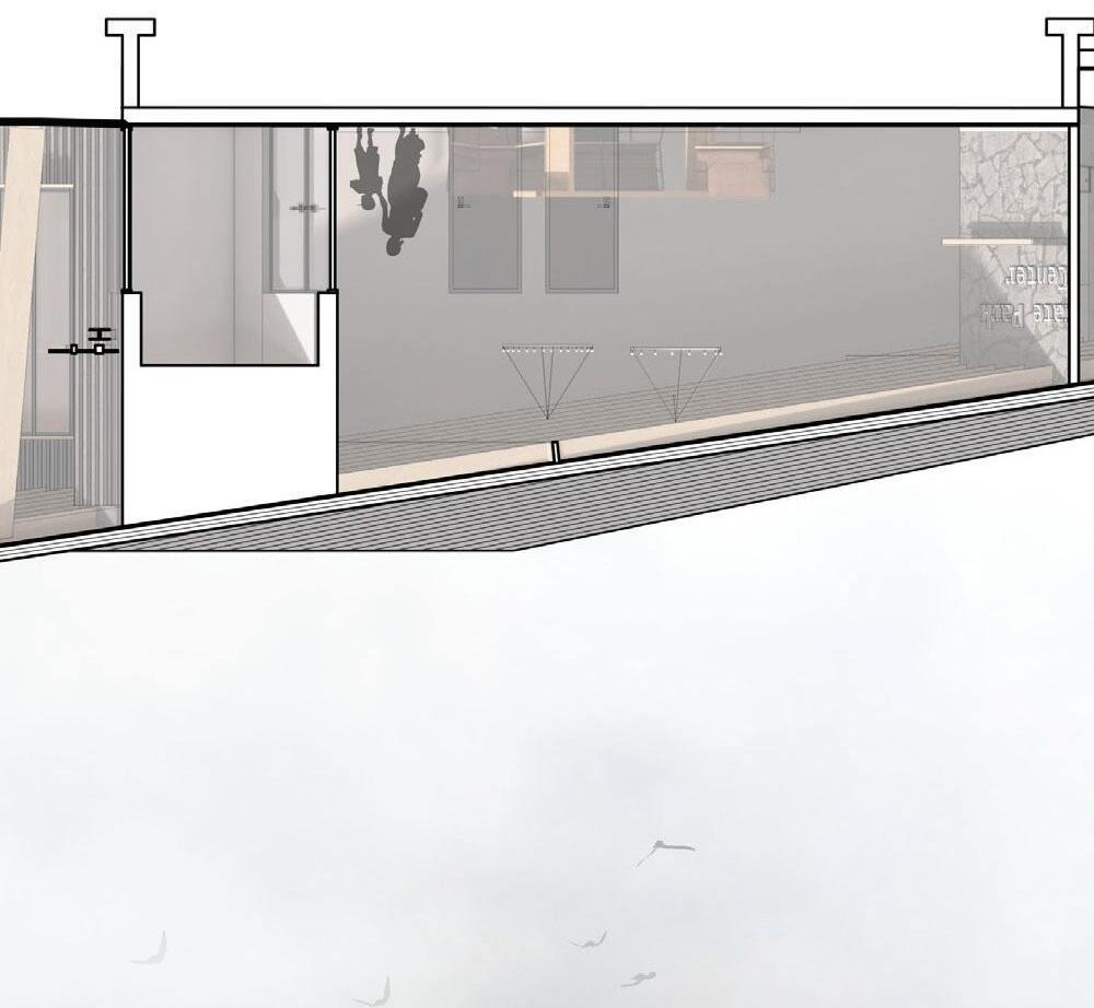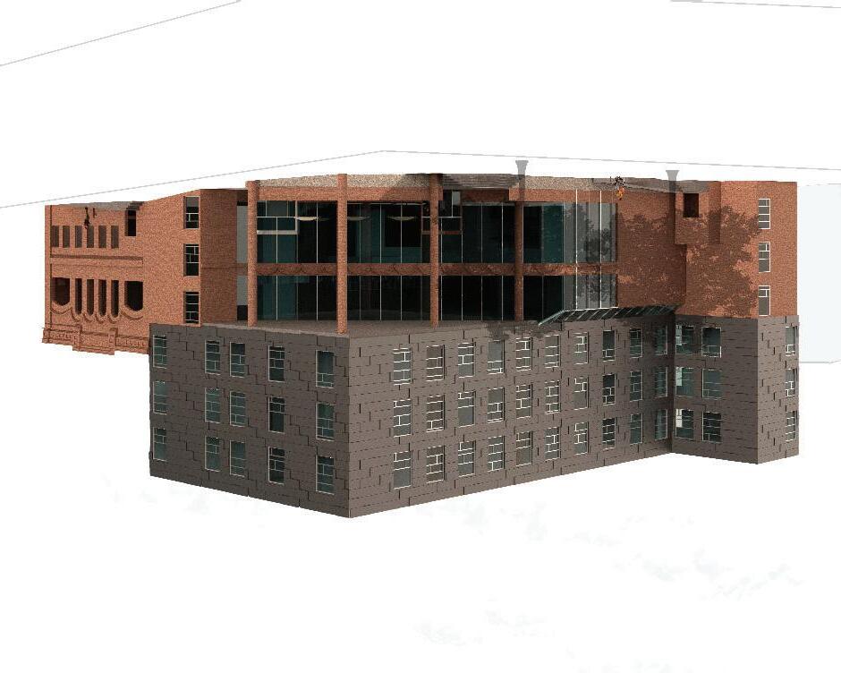 The proposed mixed-use development in Lincoln, NE, aims for a strategic integration of urban functions. Preserving the existing building on the right third of the property establishes a harmonious connection with the new development. The building is curated to house an array of amenities including a pharmacy, healthcare clinic, restaurant, bar, and condominiums. Within the existing structure, we have designated the abandoned existing building for a bar and restaurant, contributing to the vibrant pulse of the Haymarket. The residential floor of the existing building, hosts a gym and a singular unit, optimizing both functionality and spatial efficiency. Situated strategically within the Haymarket, this development serves as an anchor, seamlessly bridging the northern and southern sectors. The new structure provides the remainder of the program. The facade was angled in order to have it appear to be a barb on a fishhook, hooking people towards the structure. Positioned on 8th Street, the sole thoroughfare linking the current Haymarket to its southern extension, the design provides a central presence.