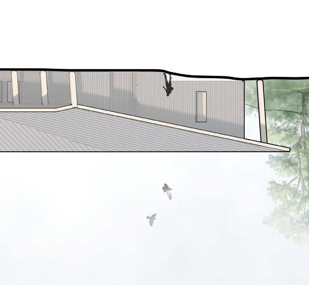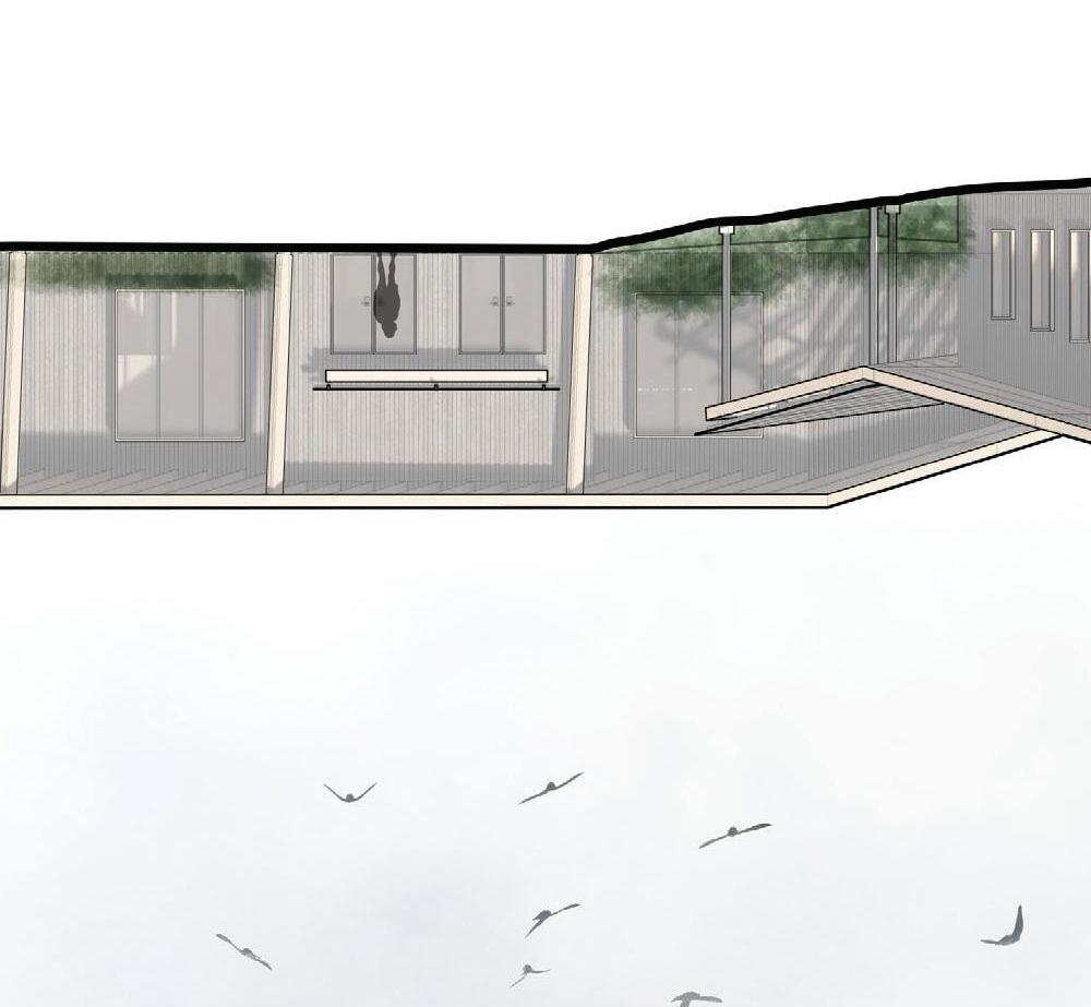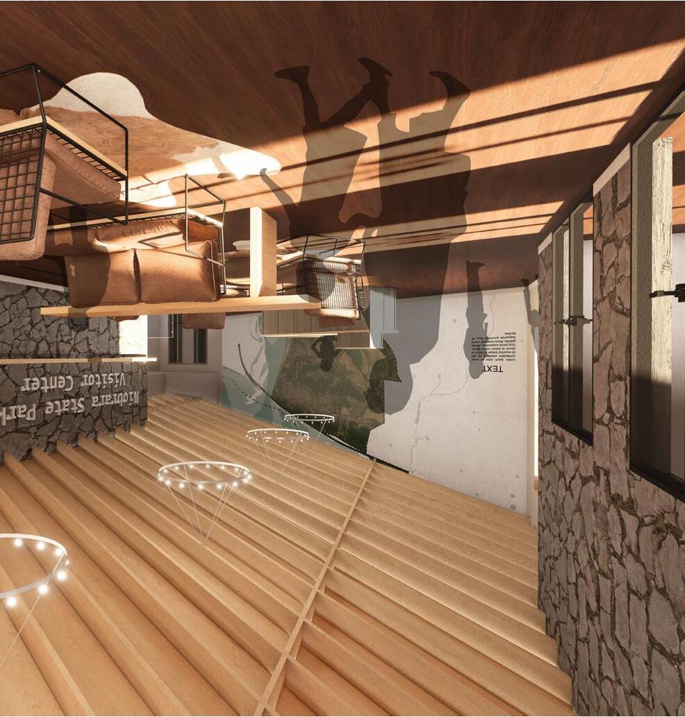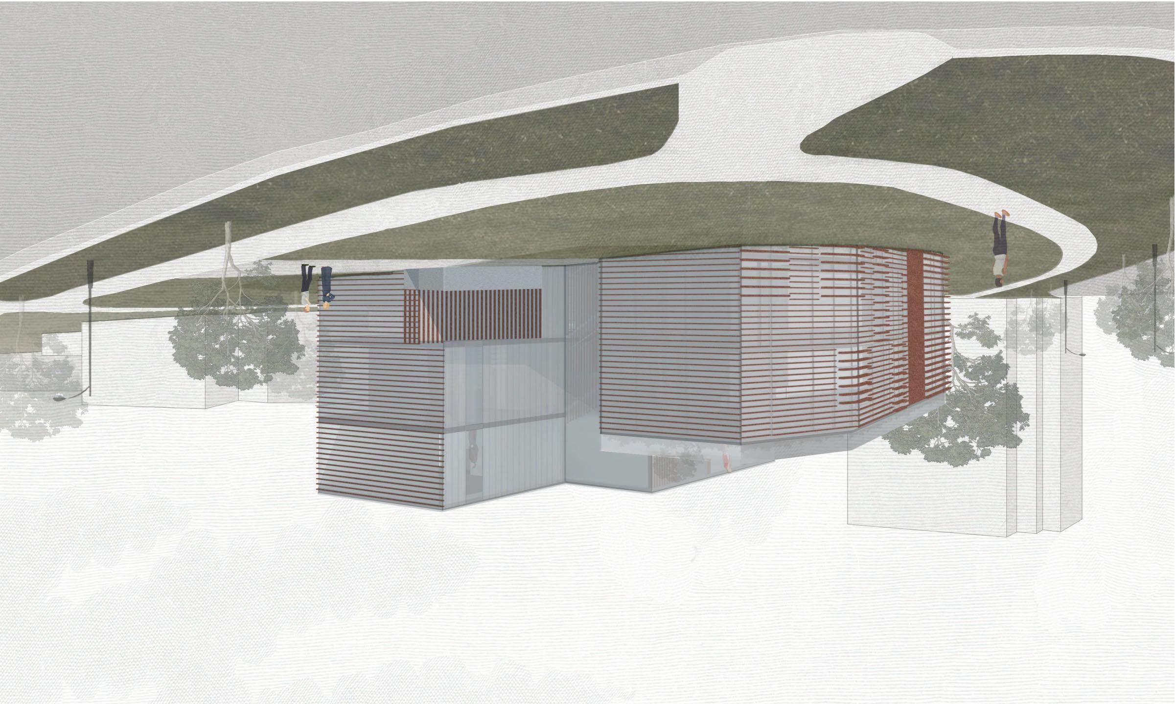 Our project envisions a versatile and visitor-centric facility, designed to harmonize with nature and the needs of the building occupants. We prioritize an open floor plan with separate wings for three main programs. There is the lobby and lounge in the center, the display area to the right of the main entrance, and an office space to the left. The interaction between our staff and public is paramount, ensuring an informative experience while providing private working areas. Sustainability is central to our ethos, reflected in the use of ecofriendly materials and minimizing light pollution. The facility encourages exploration and relaxation with a natural playscape, an education planting area, as well as a thoroughly designed exhibition space, all set against a back drop of breathtaking views.