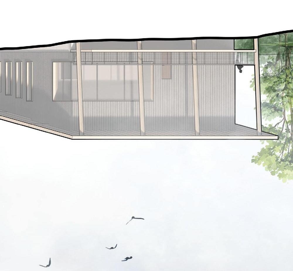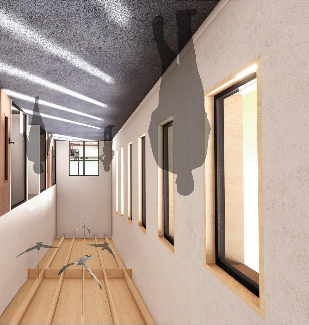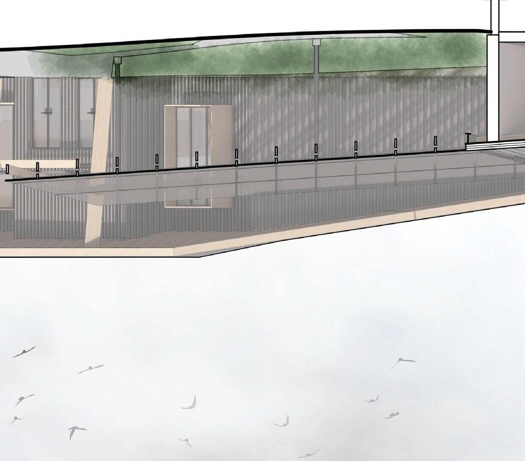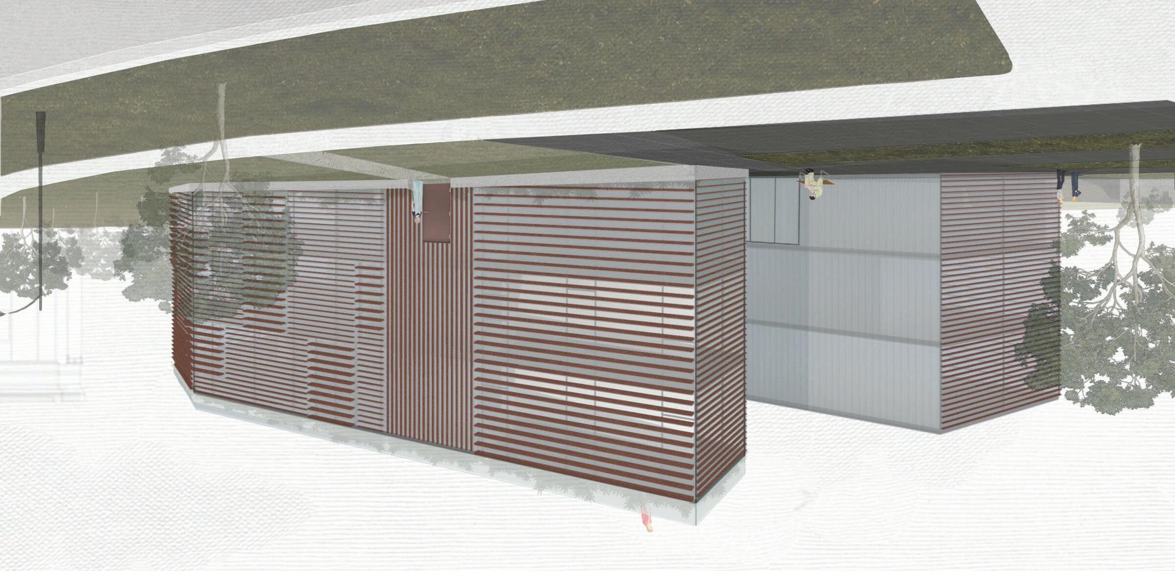 Our project envisions a versatile and visitor-centric facility, designed to harmonize with nature and the needs of the building occupants. We prioritize an open floor plan with separate wings for three main programs. There is the lobby and lounge in the center, the display area to the right of the main entrance, and an office space to the left. The interaction between our staff and public is paramount, ensuring an informative experience while providing private working areas. Sustainability is central to our ethos, reflected in the use of ecofriendly materials and minimizing light pollution. The facility encourages exploration and relaxation with a natural playscape, an education planting area, as well as a thoroughly designed exhibition space, all set against a back drop of breathtaking views.