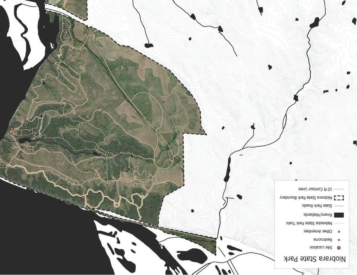 For this project we were first tasked with designing a pavilion for the Niorbrara State Parks and after further discussion my group and I decided to design two separate restroom for the park. The first restroom was designed as a new location and the second restroom was designed as a redesign of an existing location. Both are mass timber projects constructed out of four total sheets of CLT at 11’-0” wide x 53’0” long x 7” thick. For the first site we designed the restroom to fit in more with the surrounding trees and foliage in order to tuck it away and be reviled as you move closer to it. The second site was designed to be more private with strategic layout of the material since it is road side at the state park. Two of the main design intentions where to frame a specific view as well as creating a restroom with no doors. The first site is captivating the tree canopies as well as the sky and the second site is designed to provide a panoramic view of the Niobrara river.