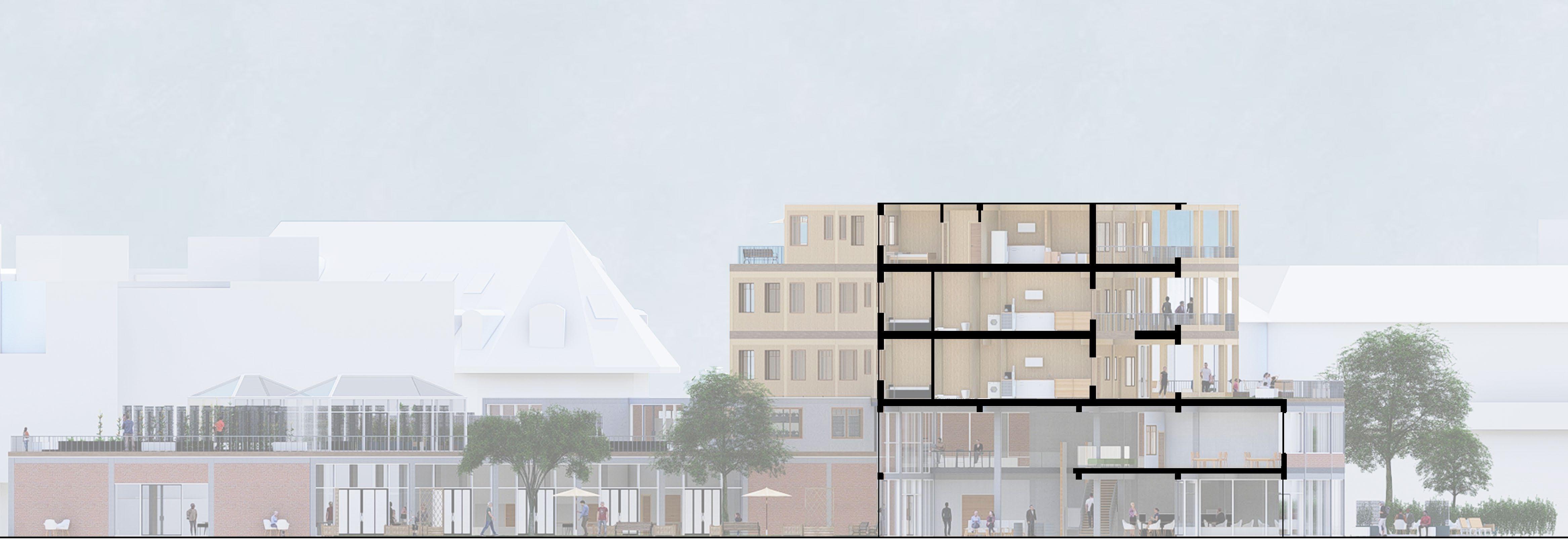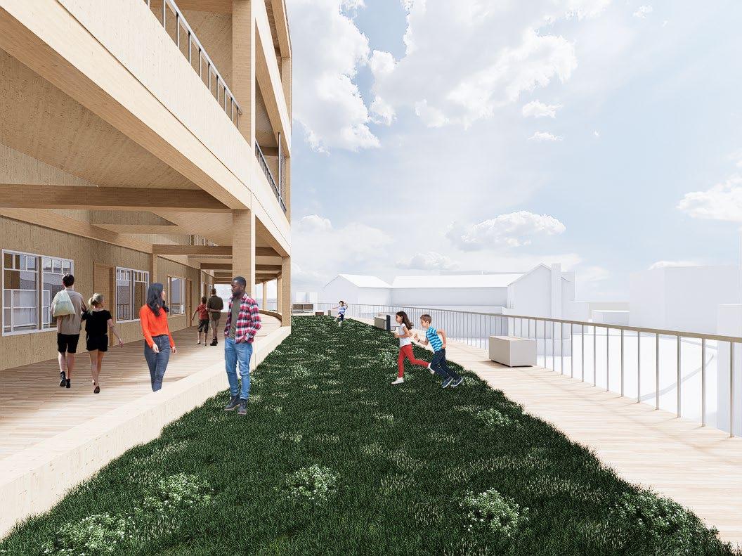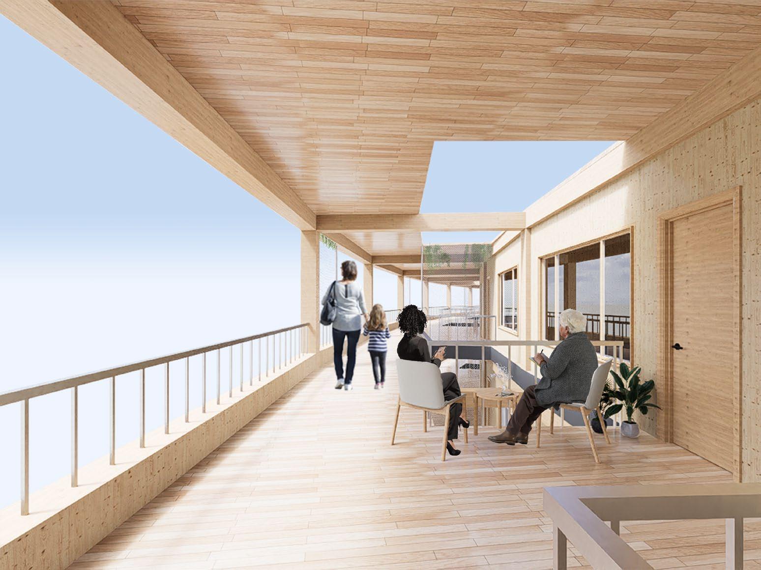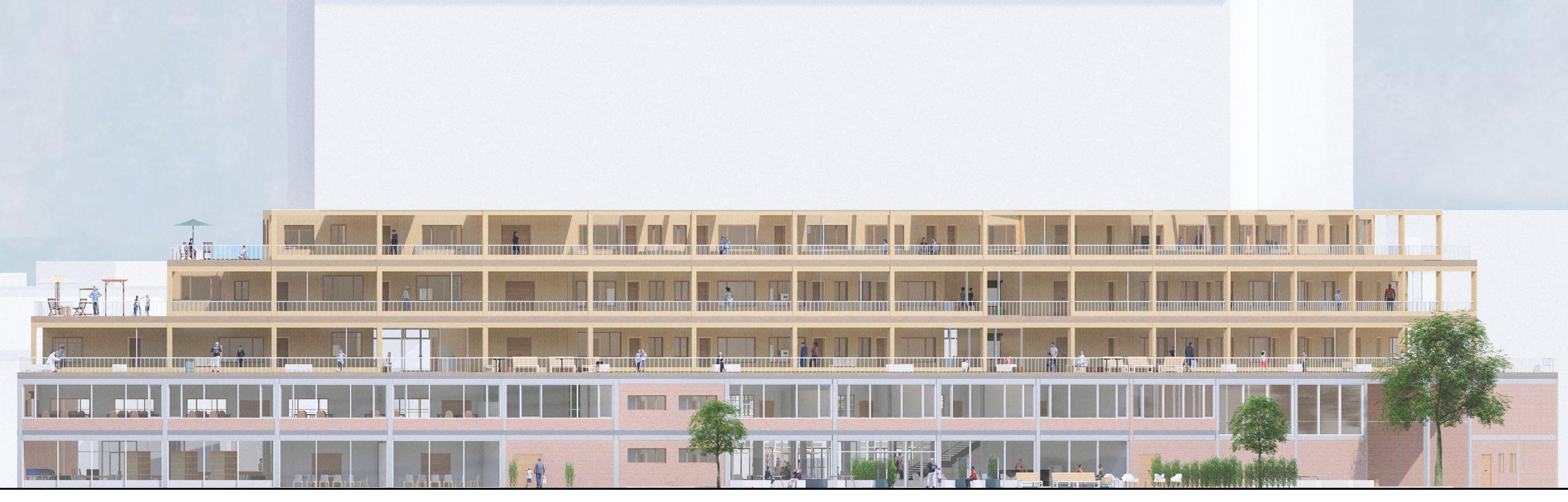 Each rejuvinated building were also structrally suported with exterior cross laminated timer which, while acting as an exterior facade can also act as structural support if the buildings were to be expanded.