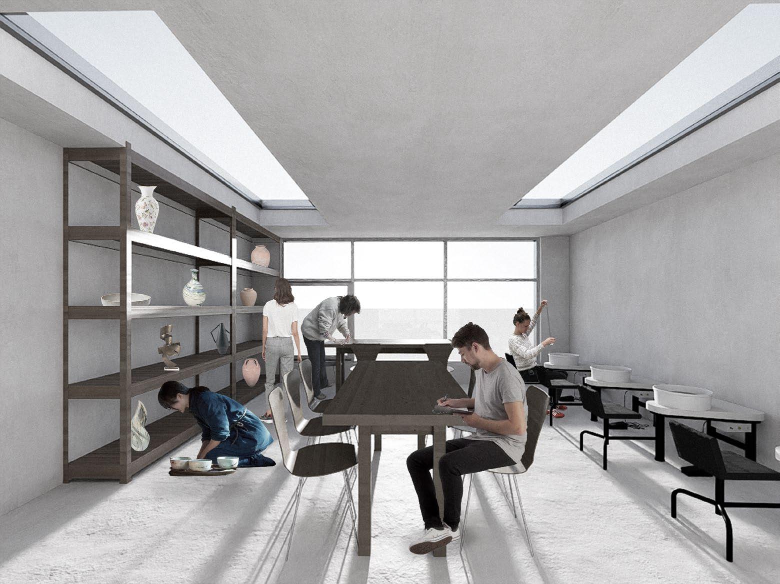 The design sensibility was to create an building which would both act as a blank canvas for the ceramists to have freedom to create within and also showcase their final creations without distractions.
