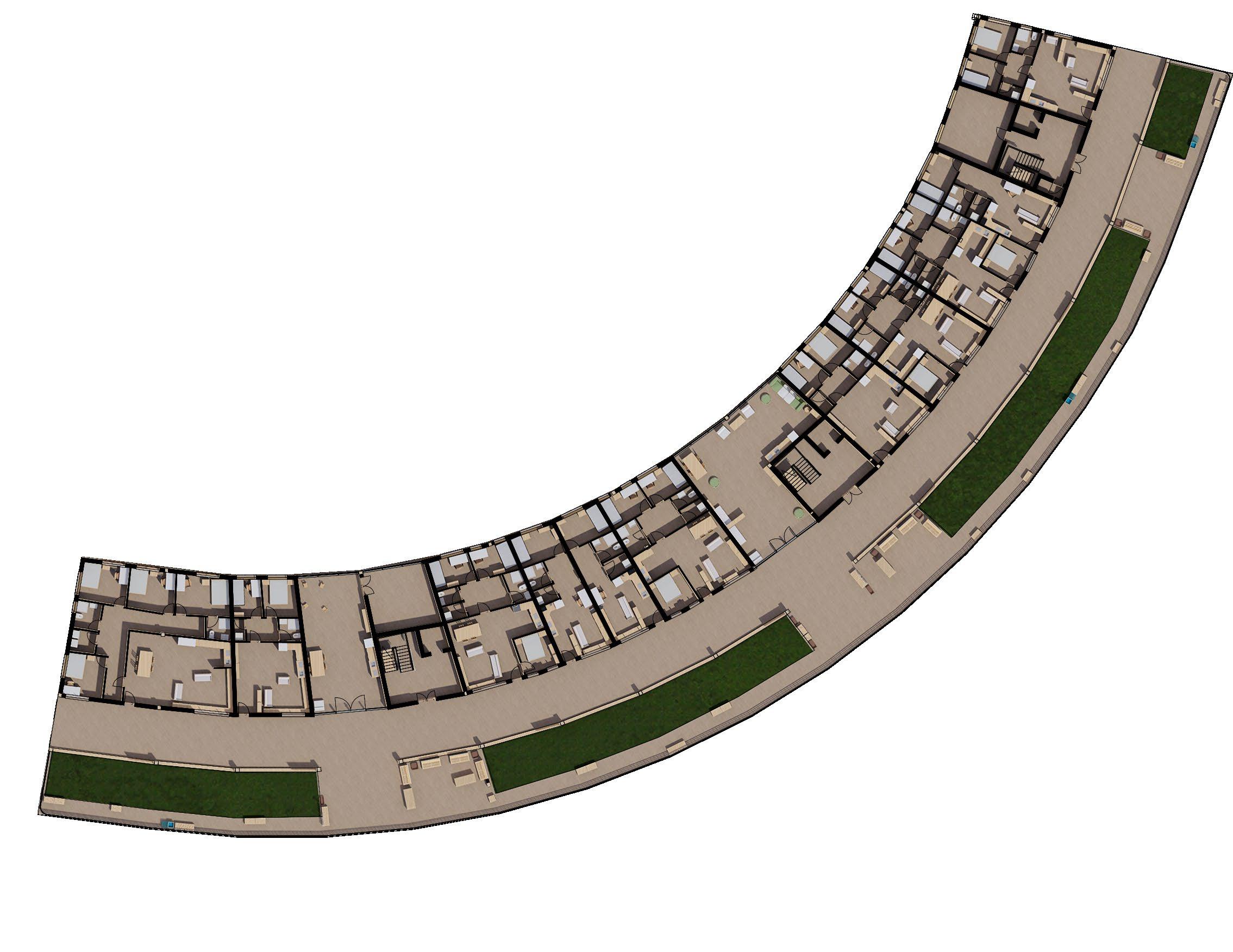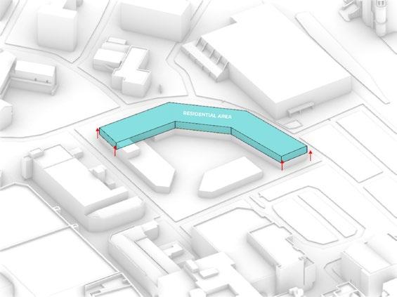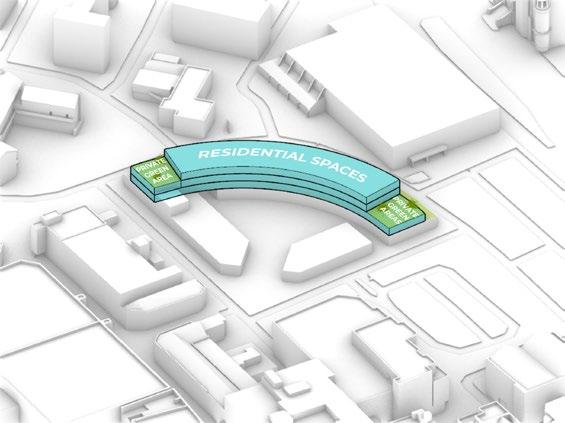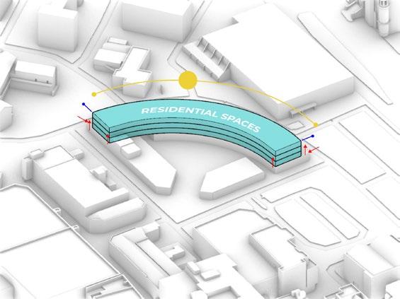 5 - Residential spaces seperated from the mixed use and positioned in increase expose to sunlight and privacy.
