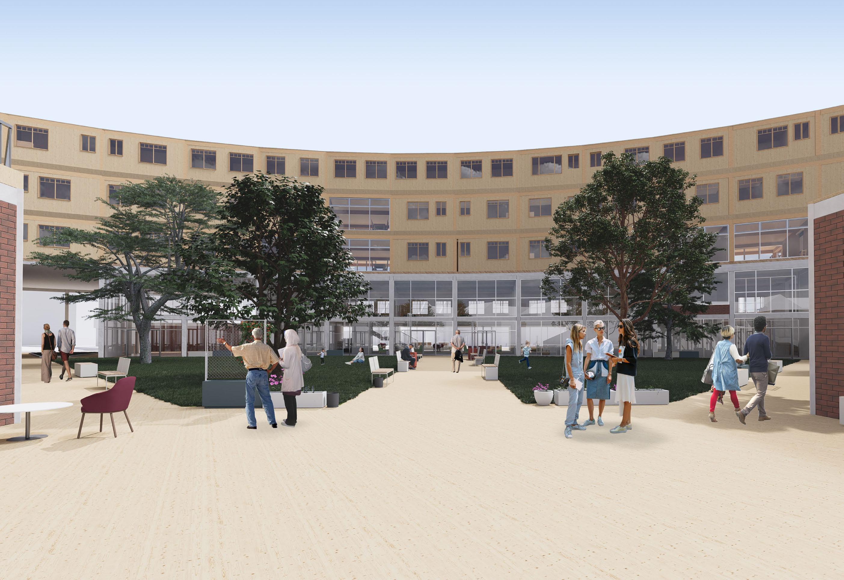 Each rejuvenate building were then connected to one anther via sky walkways which would allow for easy passage from one building to another.