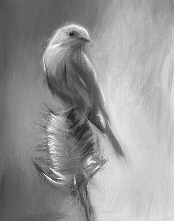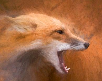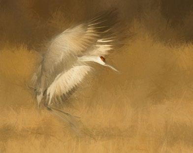 Day’s nature photography stands on its own. But digital enhancements add a look of their own. His works include, top left, a great egret; top right, an eastern bluebird, subject of his prize winning sketch; bottom left, a red fox; bottom right, sandhill crane.