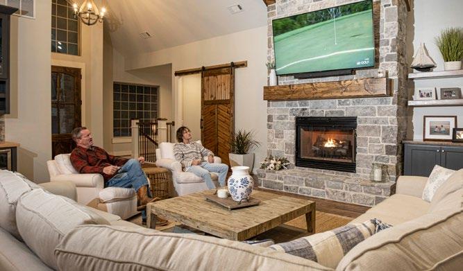 Rob Forsyth, left, and son Ty enjoy watching the big screen TV over the fireplace.