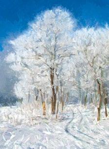 Top, A snow goose spreads its wing feathers against a black background. Bottom left, a digital sketch shows a snow goose in flight. Bottom right, a snowy lane offers a chilly escape.