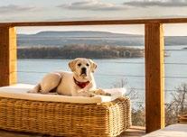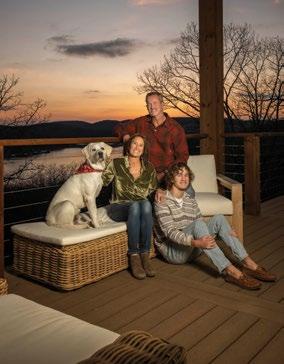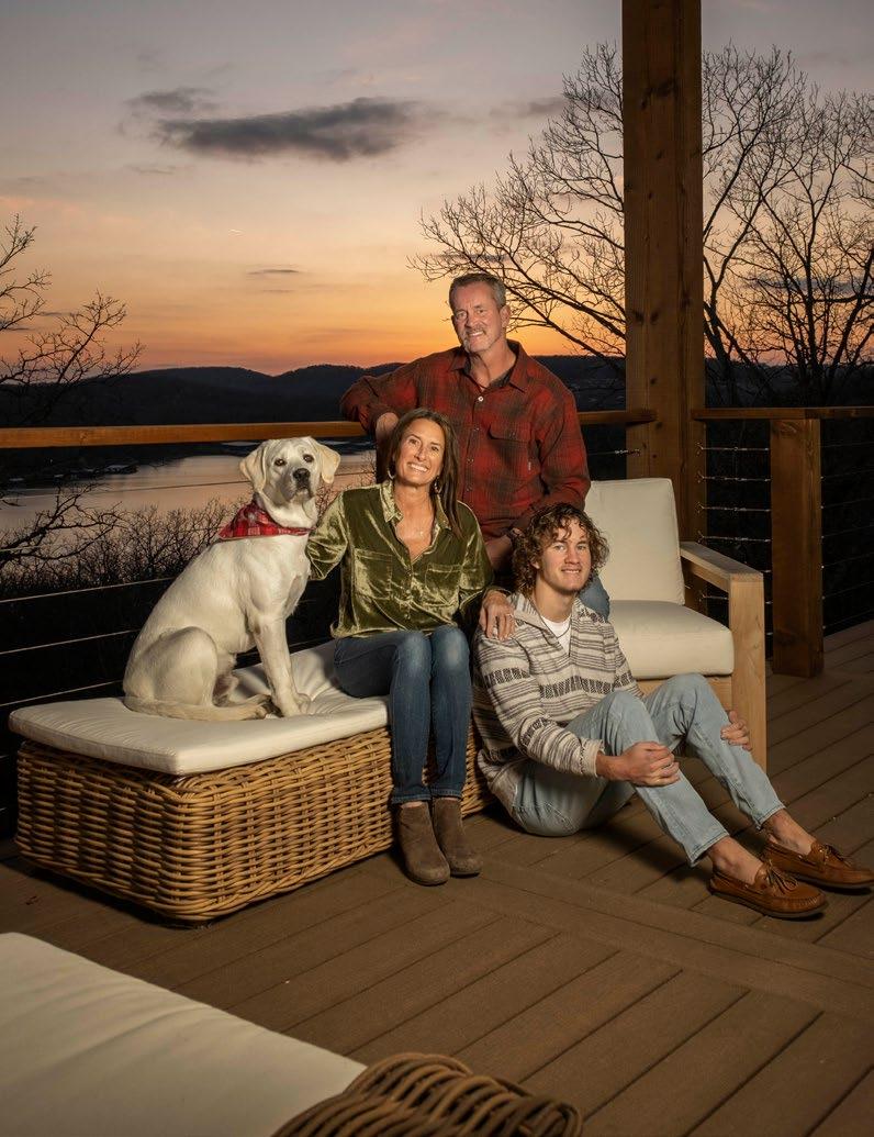 Joan and Rob Forsyth enjoy the Lake Tenkiller sunset with their labrador retriever, Bodhi, and younger son Ty, seated.