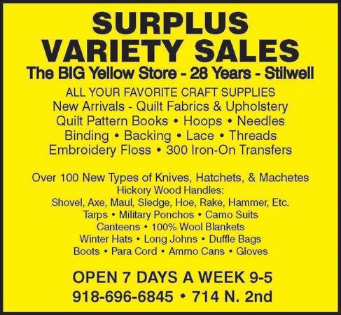 LUNCH FOR SENIOR CITIZENS, served at noon every Monday and Wednesday at the Cookson Hills Center United Methodist Mission, 32035 OK-82, Cookson.