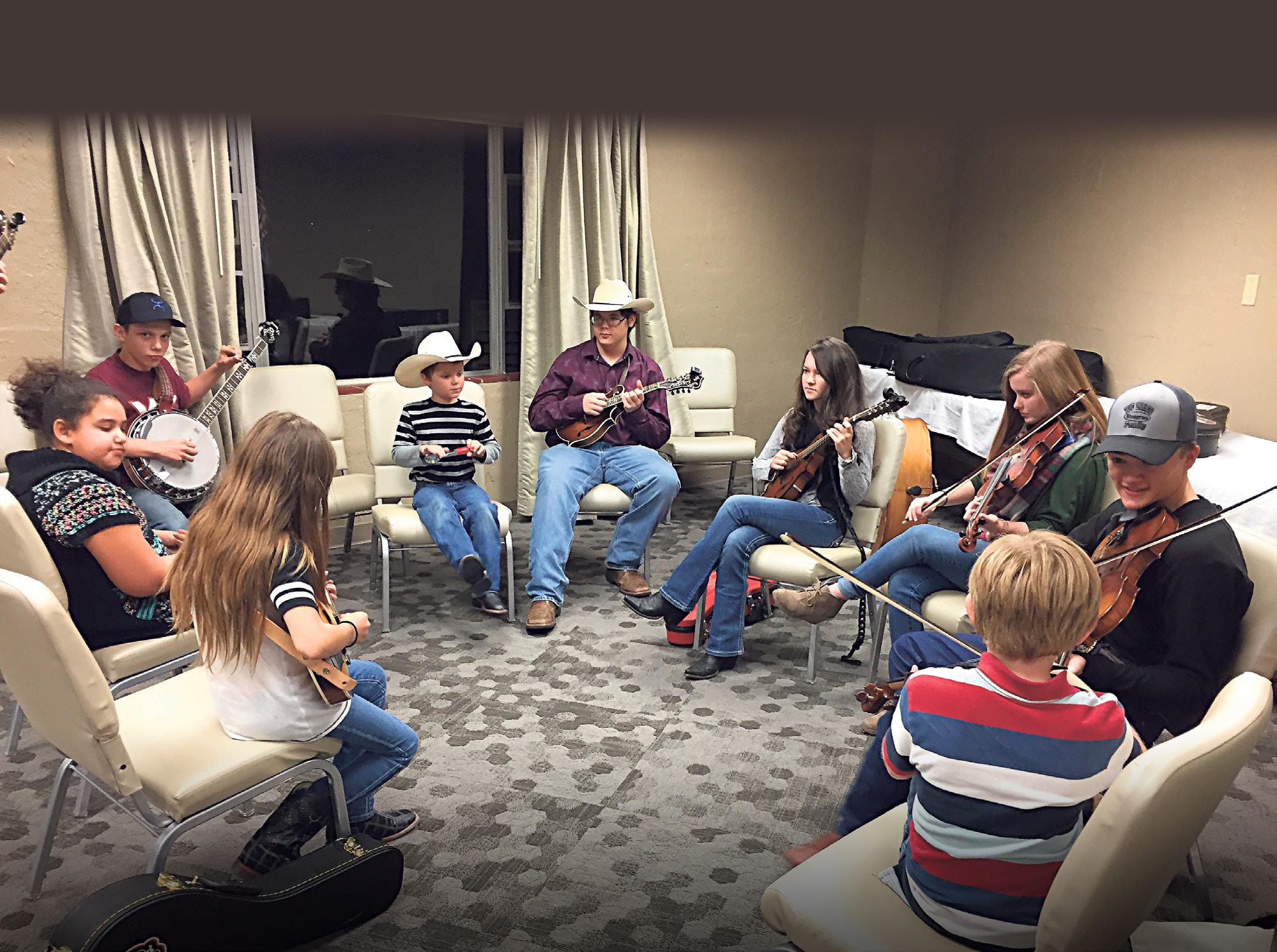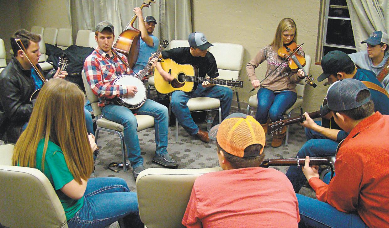 Jam sessions fill spare rooms and corners at Sequoyah Lodge during the Western Hills Bluegrass Festival.