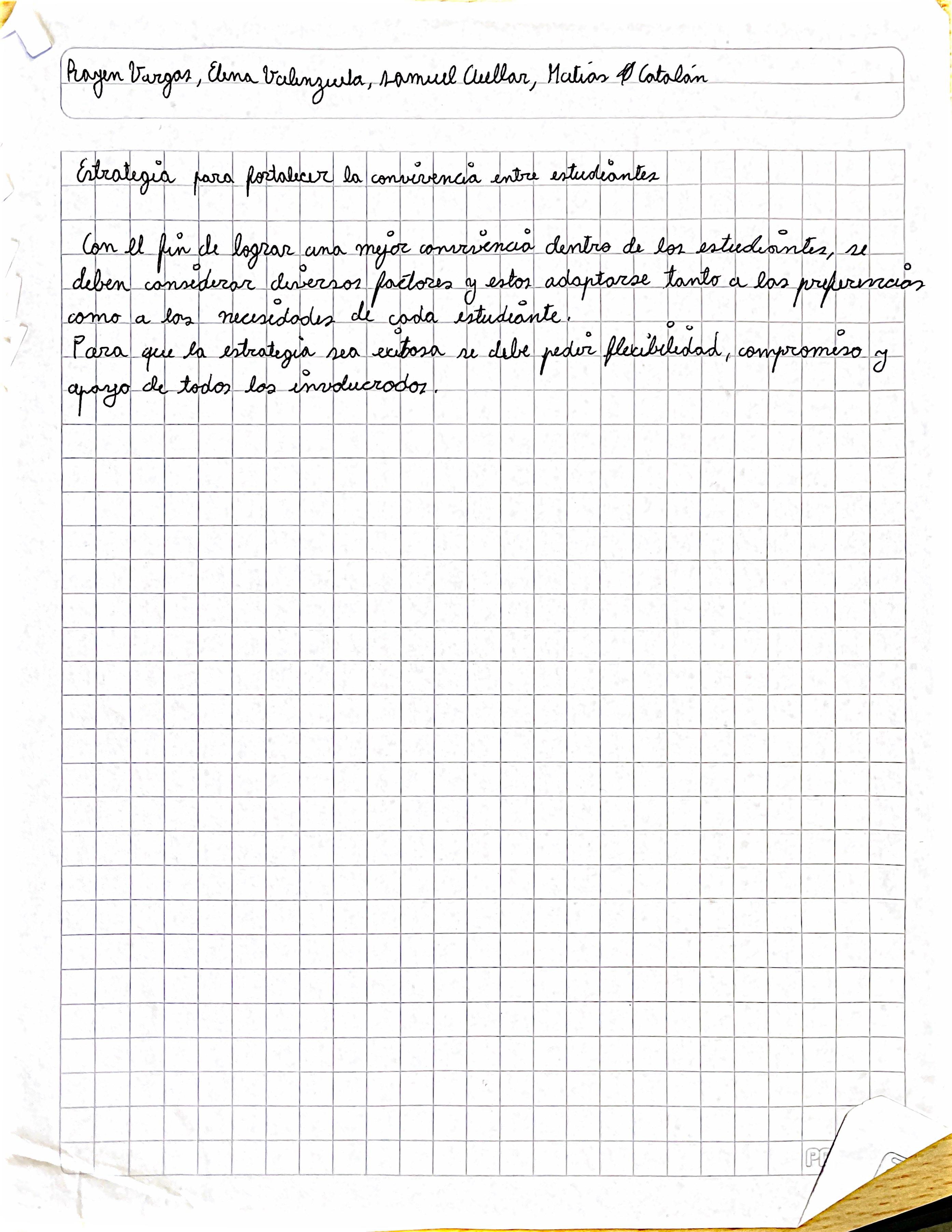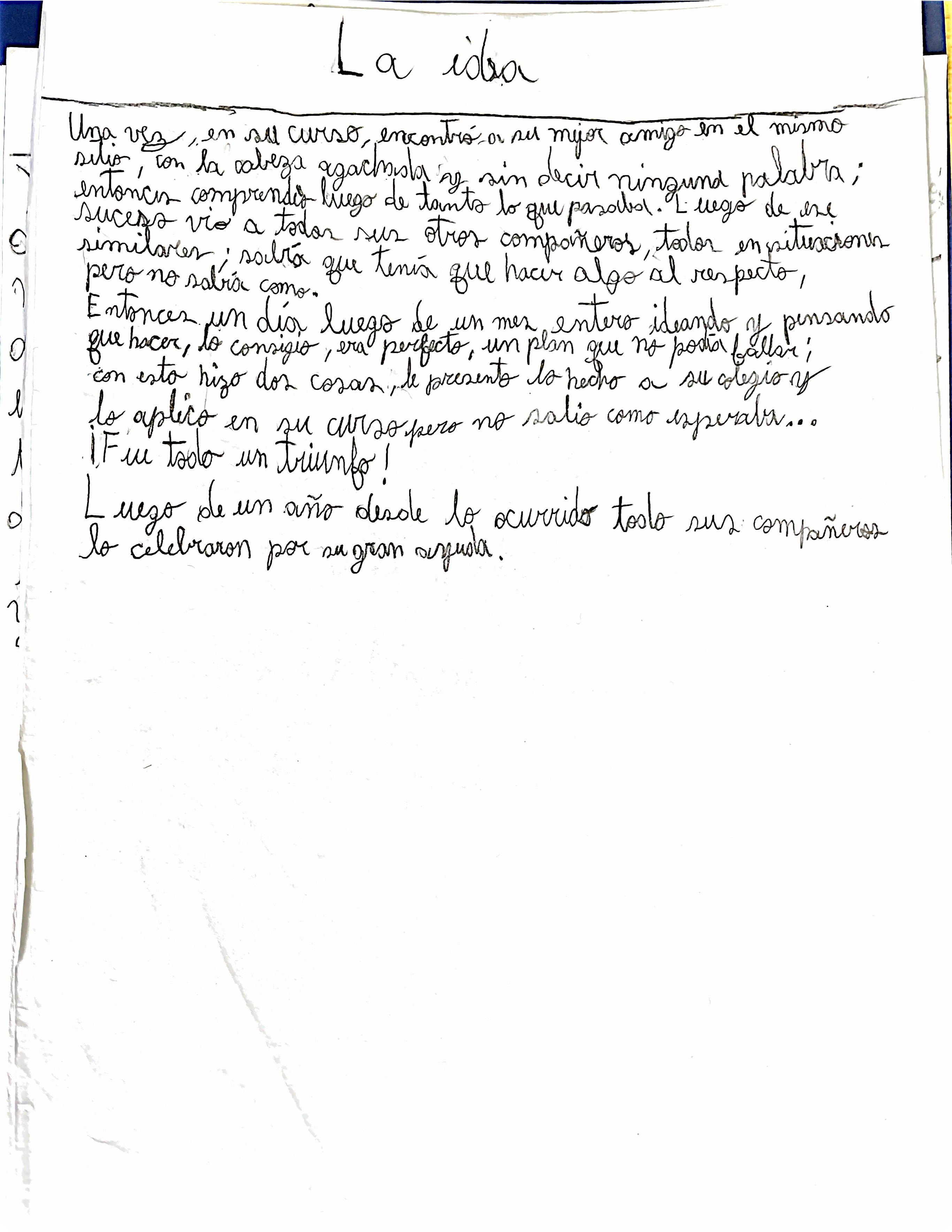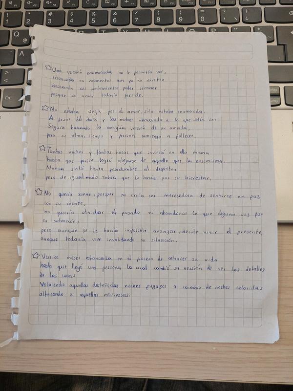 Nervios, nervios rodeaban el cuerpo de la chica de lentos y piel clara. Mirada abajo desde la puerta, miedo al conecto con el resto. No sabía nada, ha ojos cerrados venía. Sin espera ha la hospitalidad del espacio y el curso, sin saber quiénes eran ni como eran. Cariño, caos y armonía es lo que sintió en su primer día de clases en 1MA