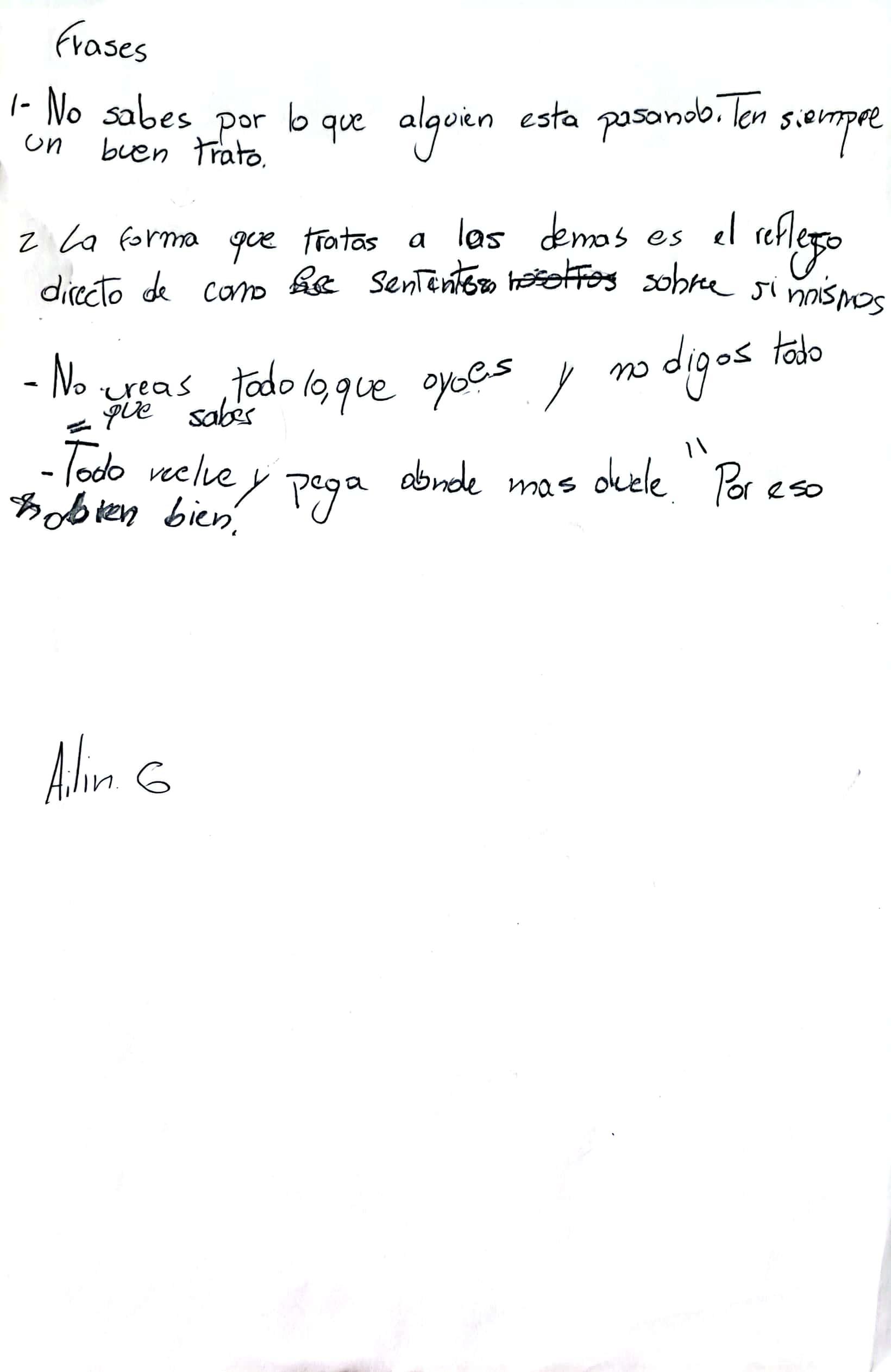 Tratar mejor a los demás, cuidar de quienes sufren no sigan sufriendo más, mantener nuestro curso en paz, tener buenas relaciones y siempre solidaridad.