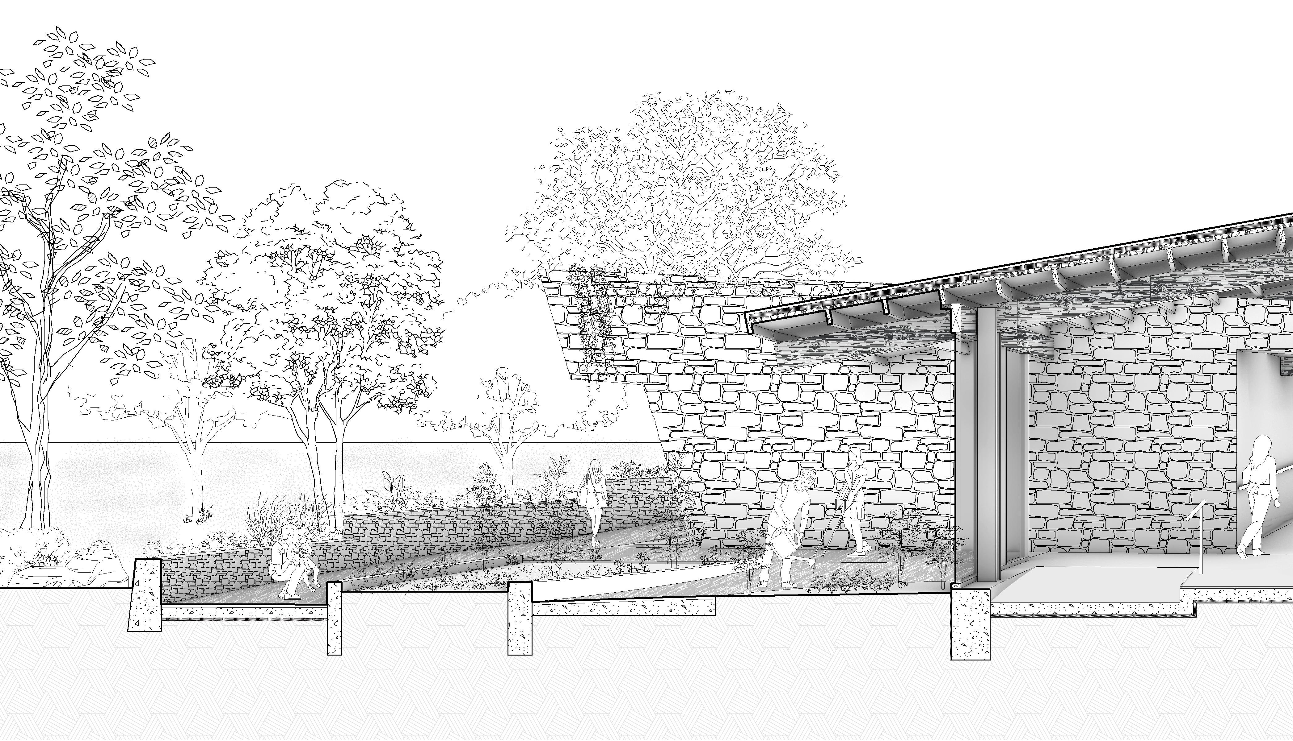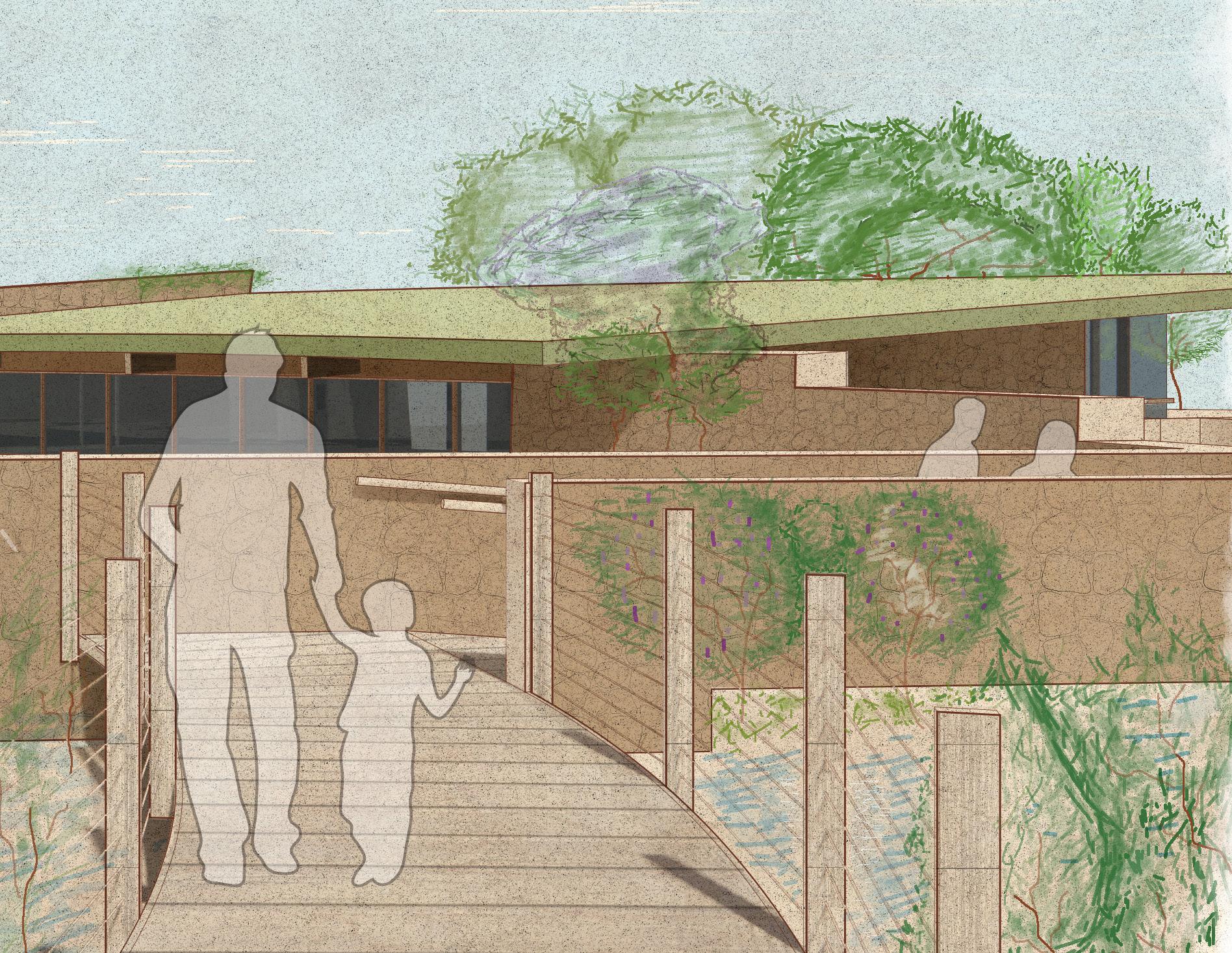 The Lake Thunderbird Boathouse is a project concerned with the relationship between land, water , and a built structure. My project is experienced alongside nature. The main entry path takes you through a rain garden and terraced planting before arriving at the reception which is embedded in the ground. A curved ramp starting at the reception continues throughout the project making all spaces accessible. The form of the café allows for pockets of gardens to be an integral part of its gathering space, further expanding the connection to nature. Throughout the journey from Alameda Dr to Little River State Park the surroundings transform in a way that creates an emotive experience for visitors. This feeling of passing a