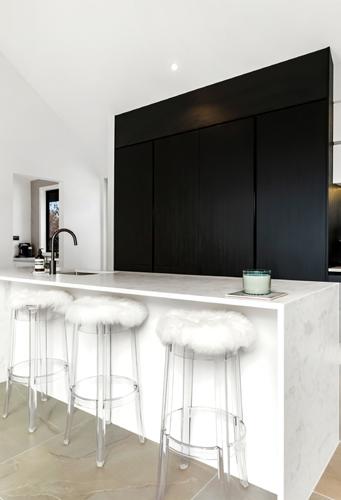 The smooth, velvety patterns of the Metropolis Oyster combine with the stark white background for a distinguished, sophisticated finish. Flowing swirls of grey are overlaid with subtle specks of dark grey for contrast. A sense of motion meets calm stillness for a truly serene effect. The dramatic waterfall edges bring added style, creating an inspiring area for meal prep and dining. The benchtop is further complimented by the Stirling Gooseneck tap in a gunmetal finish. This modern and versatile swiveling tap offers quality and timeless style.