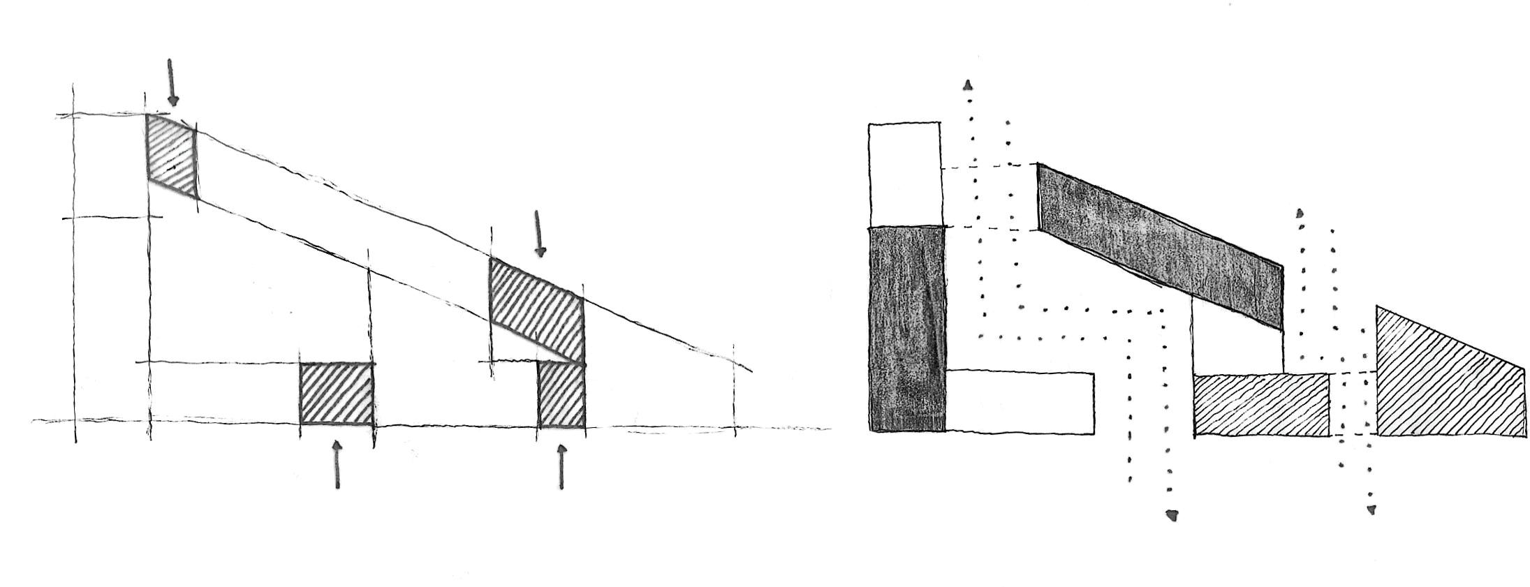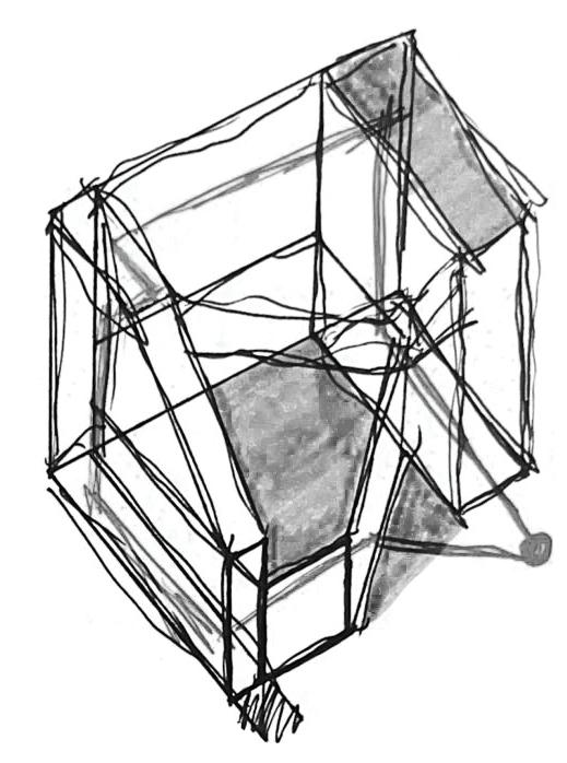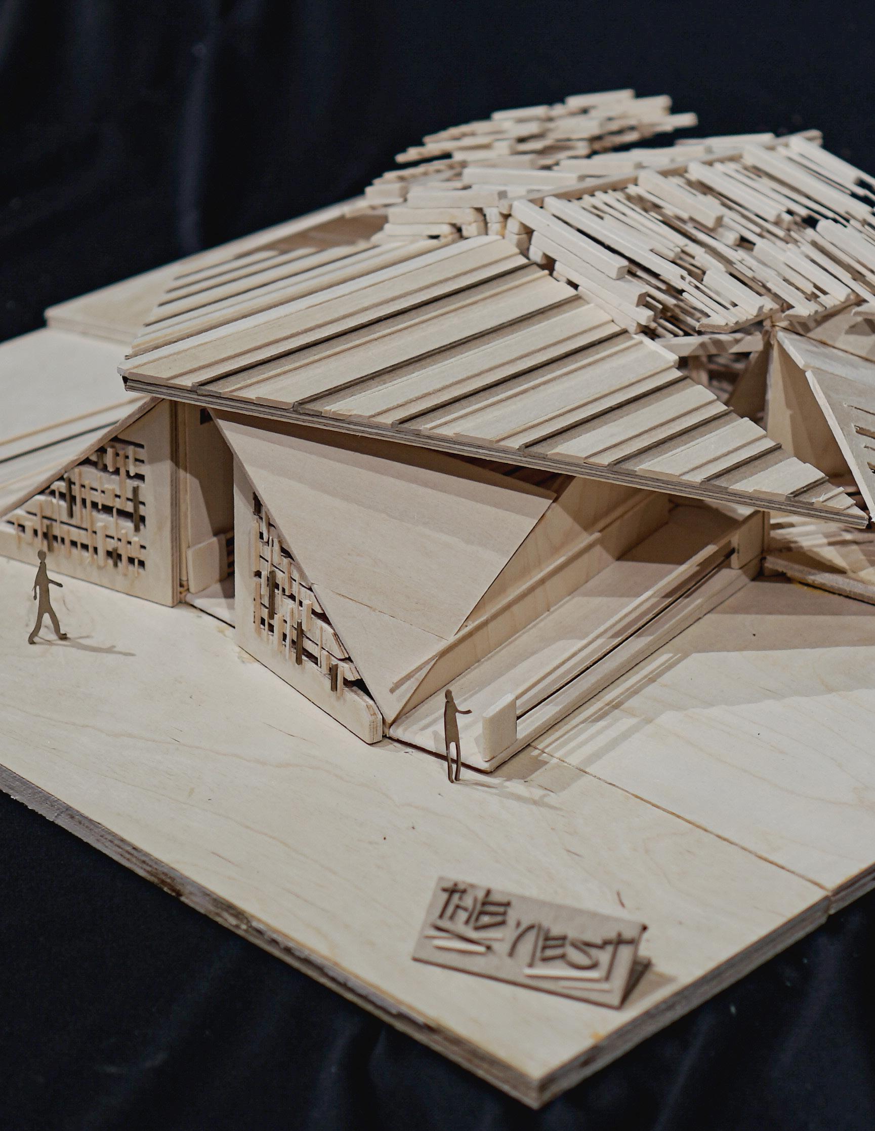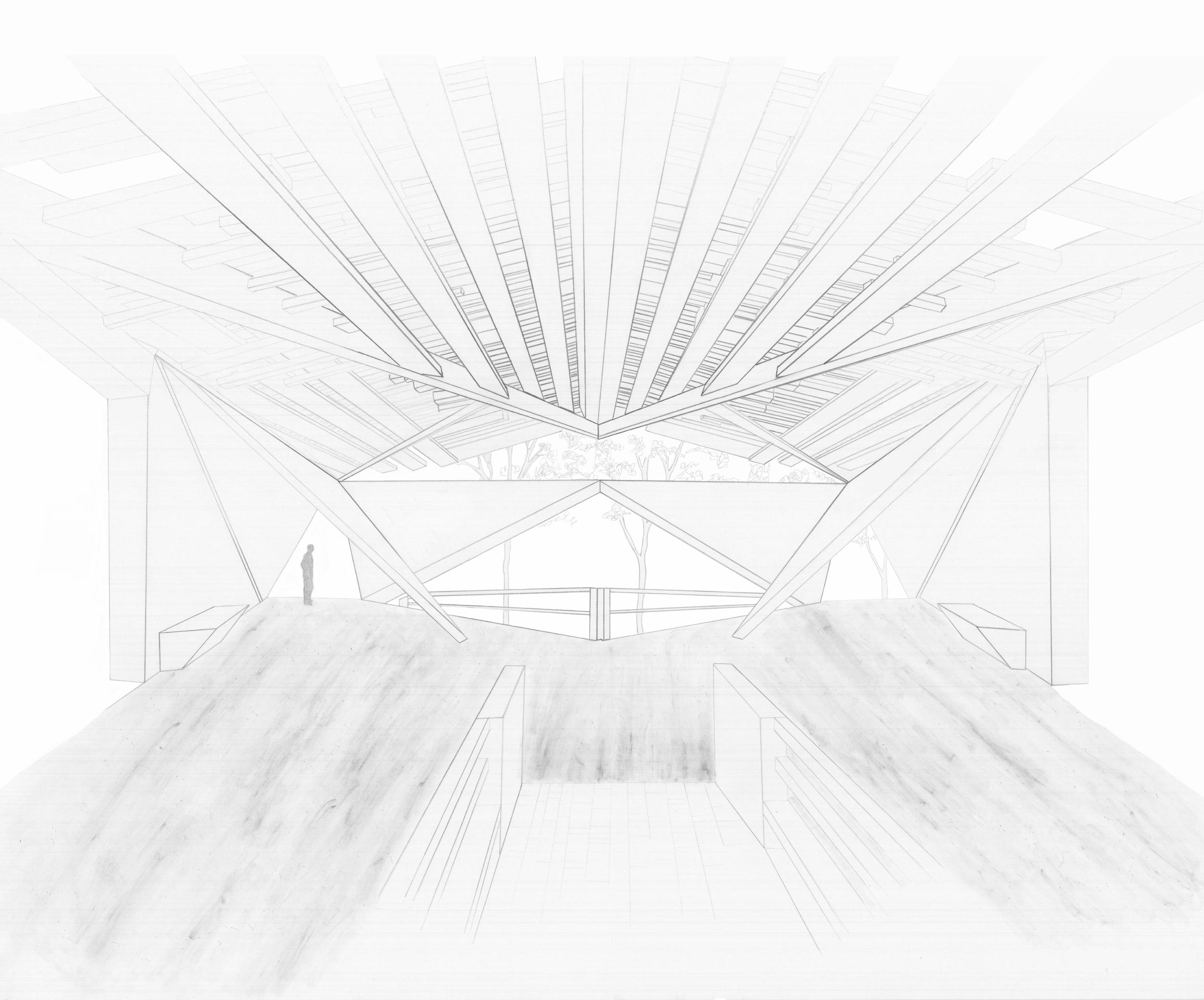 THE SYSTEM_A grand steel gesture of the façade establishes a new volume to the aesthetic of the street and sidewalk. Influencing users’ perception of space and scale, both externally and internally, the cantilevered façade brings a distinctive identity to the structure that alters the perceived size and massing of the building from the exterior similar to a gantry crane. In this instance, the bracing motif of the conceptual model is simply expressed as an element hung from the structure of the main massing. The cross bracing offers a tactile connection to the structure of the façade that users can become immersed in. Other exterior opportunities are offered in the user experience through an outdoor terrace suspended above the street edge offering panoramic views or outdoor gathering areas. The suspended condition also presents the opportunity to internally define spatial hierarchies and transitions between programs, continuing to contribute to the sense of openness or enclosure. Influencing spatial organization, the cantilevered façade defines a clear entry space that has protection from harsh elements and required ventilation. At the street level, a stramp plaza and grand stair corridor expression becomes a public space that is inviting and supported by the aesthetic and formal language of the structure. With a vision to influence the interaction of the urban context, this sequence focuses on the experience of the exterior to invite users to the interior.