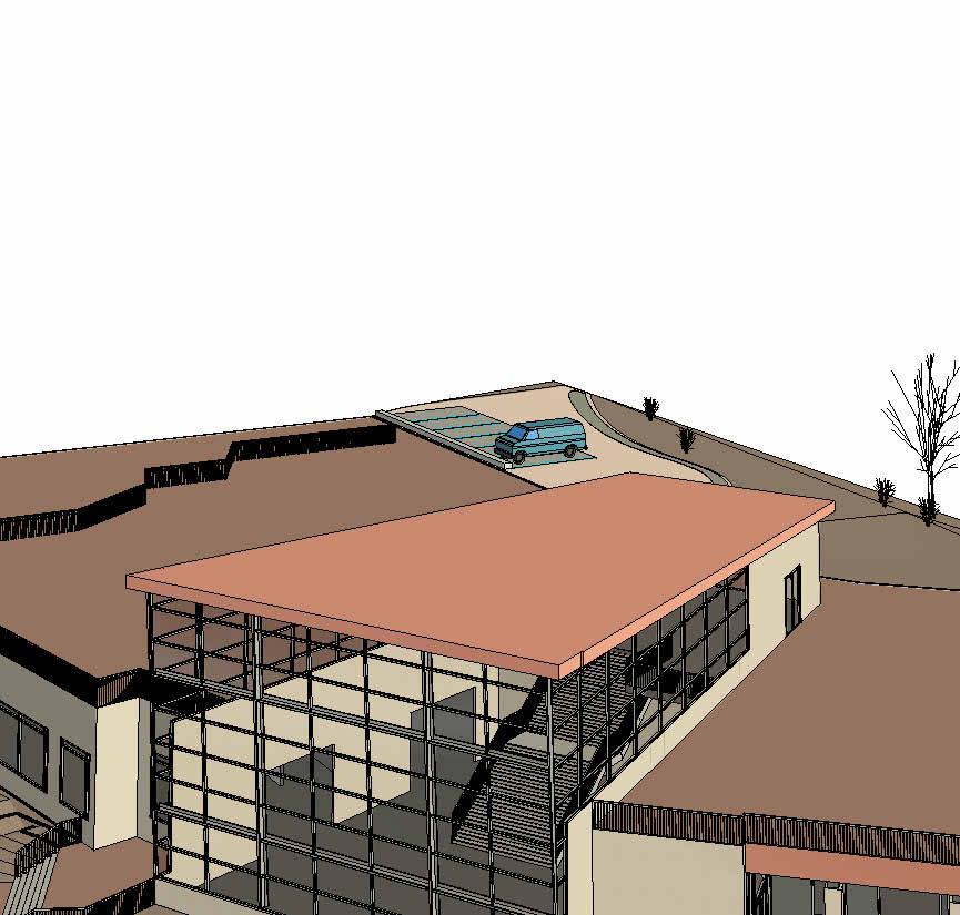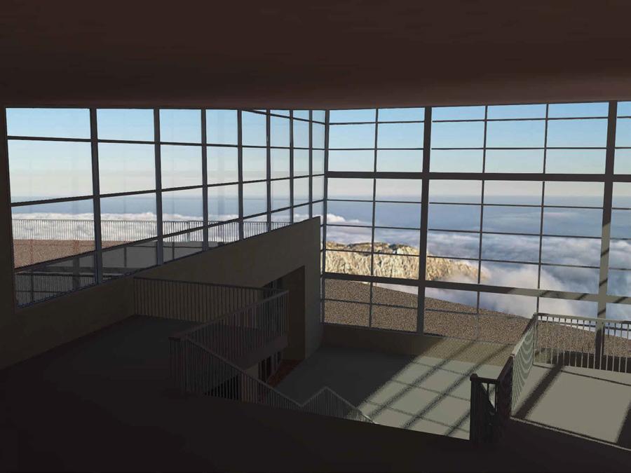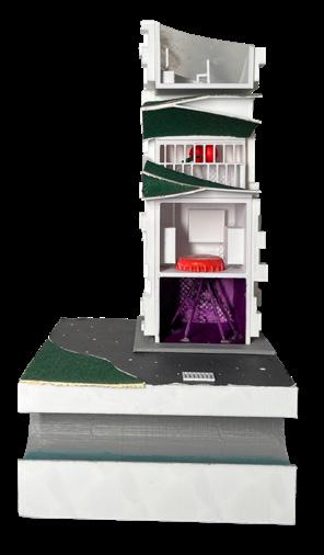 EACH FLOOR OF THE MODEL ABSTRACTLY REPRESENTS AN AMENITY ONE WOULD FIND WITHIN THE NIGHT DISTRICT. THE FIRST FLOOR IS SYMBOLIC OF THE NIGHTCLUBS. THE SECOND FLOOR PRESENTS THE BAR.