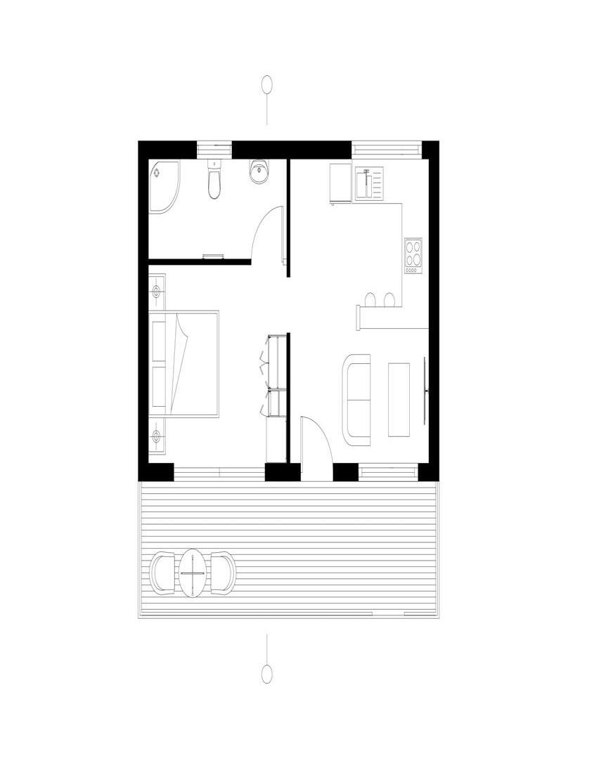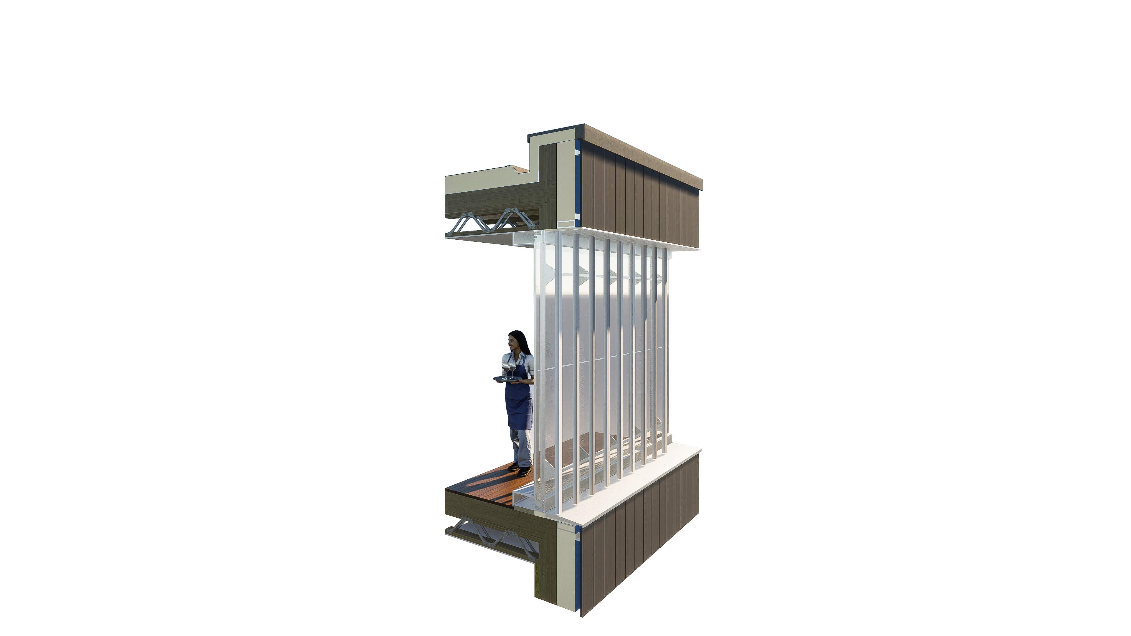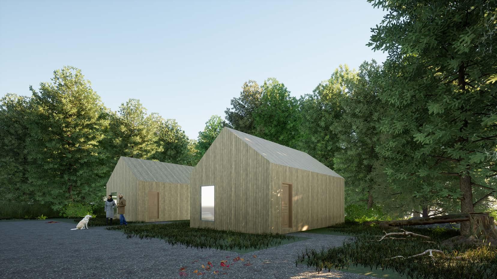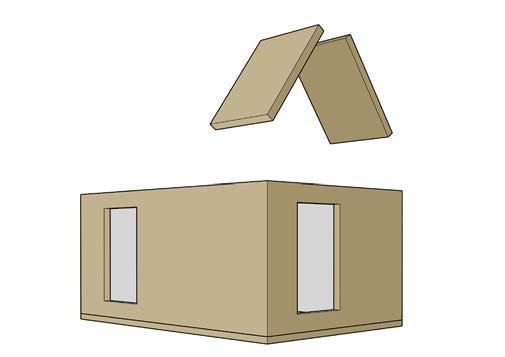 To construct these lodges, additional CLT walls from the hotel can be used as the pod’s roof. This will reduce material wastage, but additional materials will be needed, such as timber cladding for the aesthetic, membranes for air tightness and water security and concrete for the foundation.