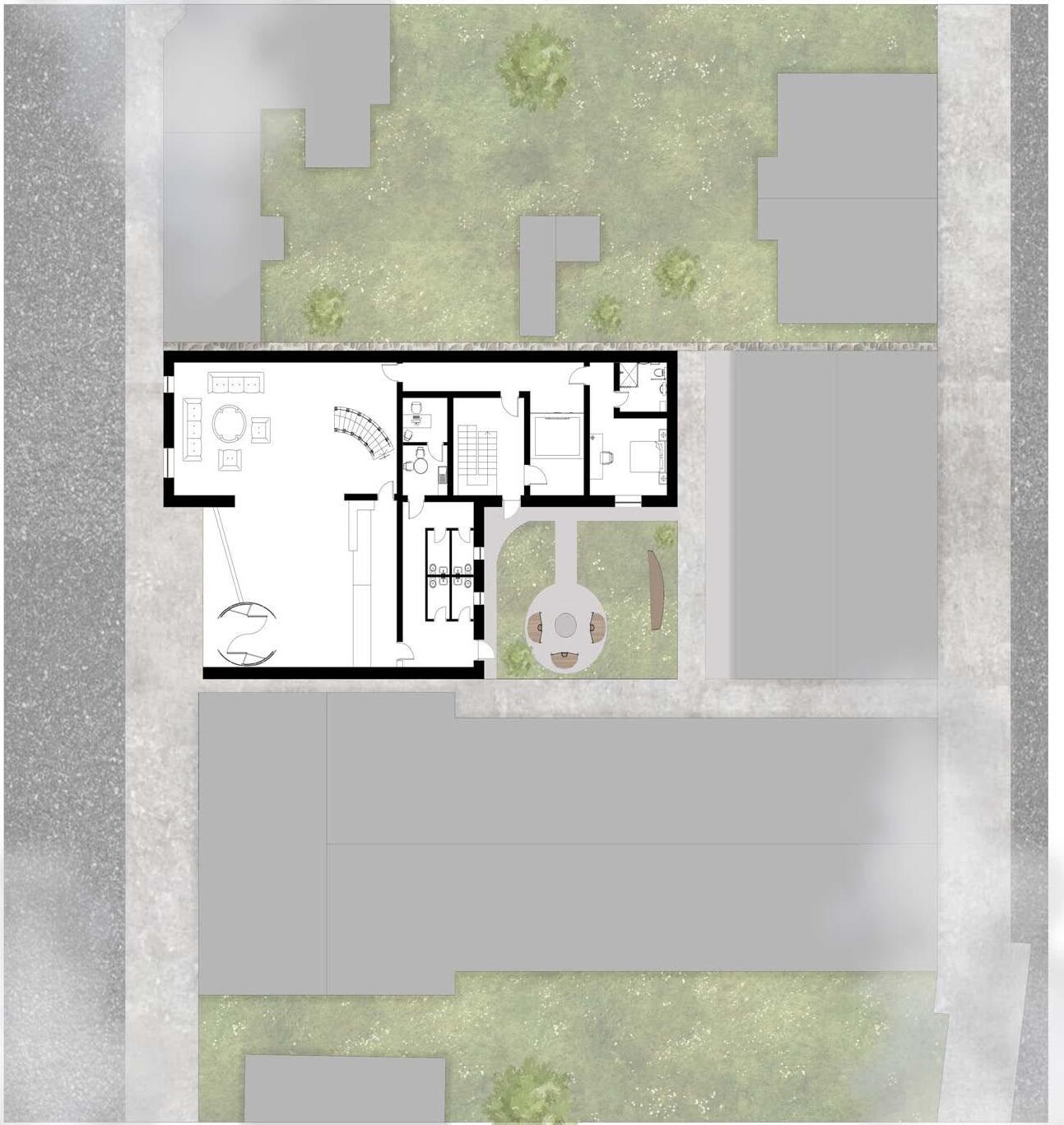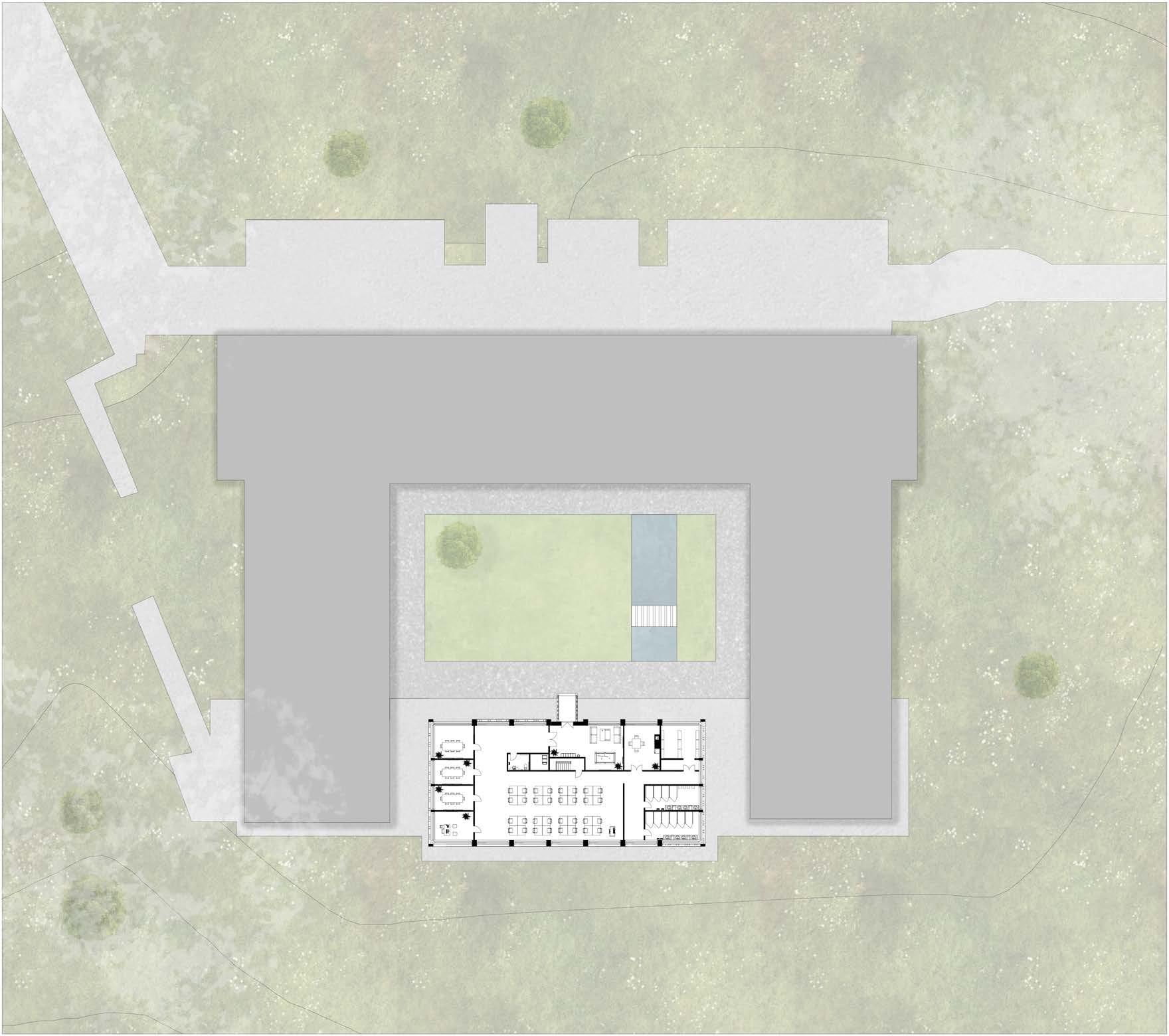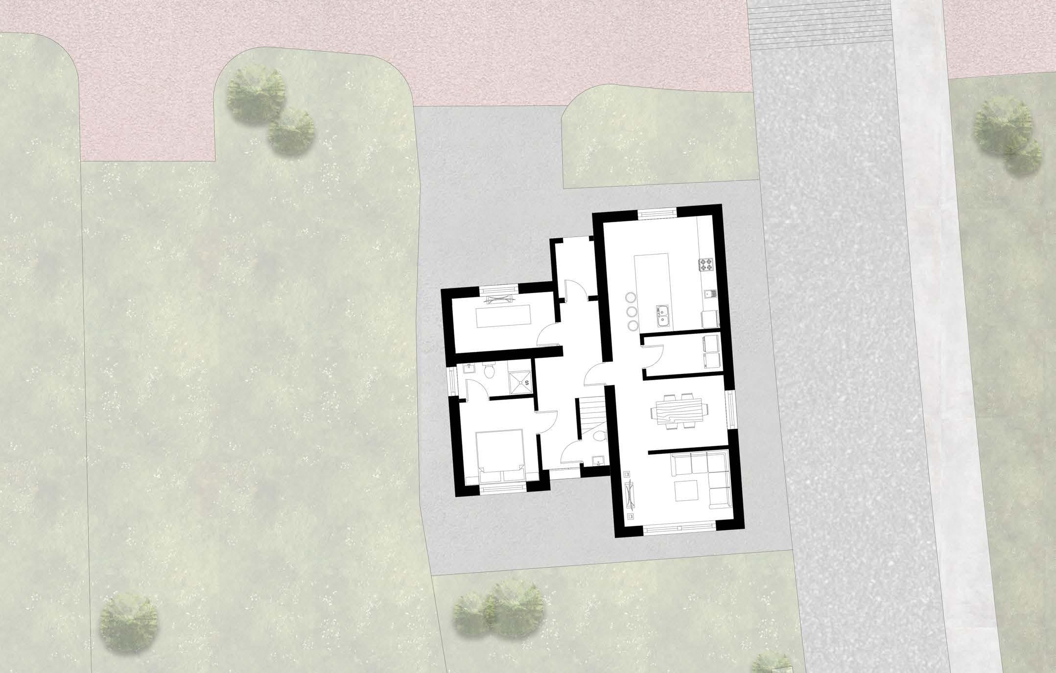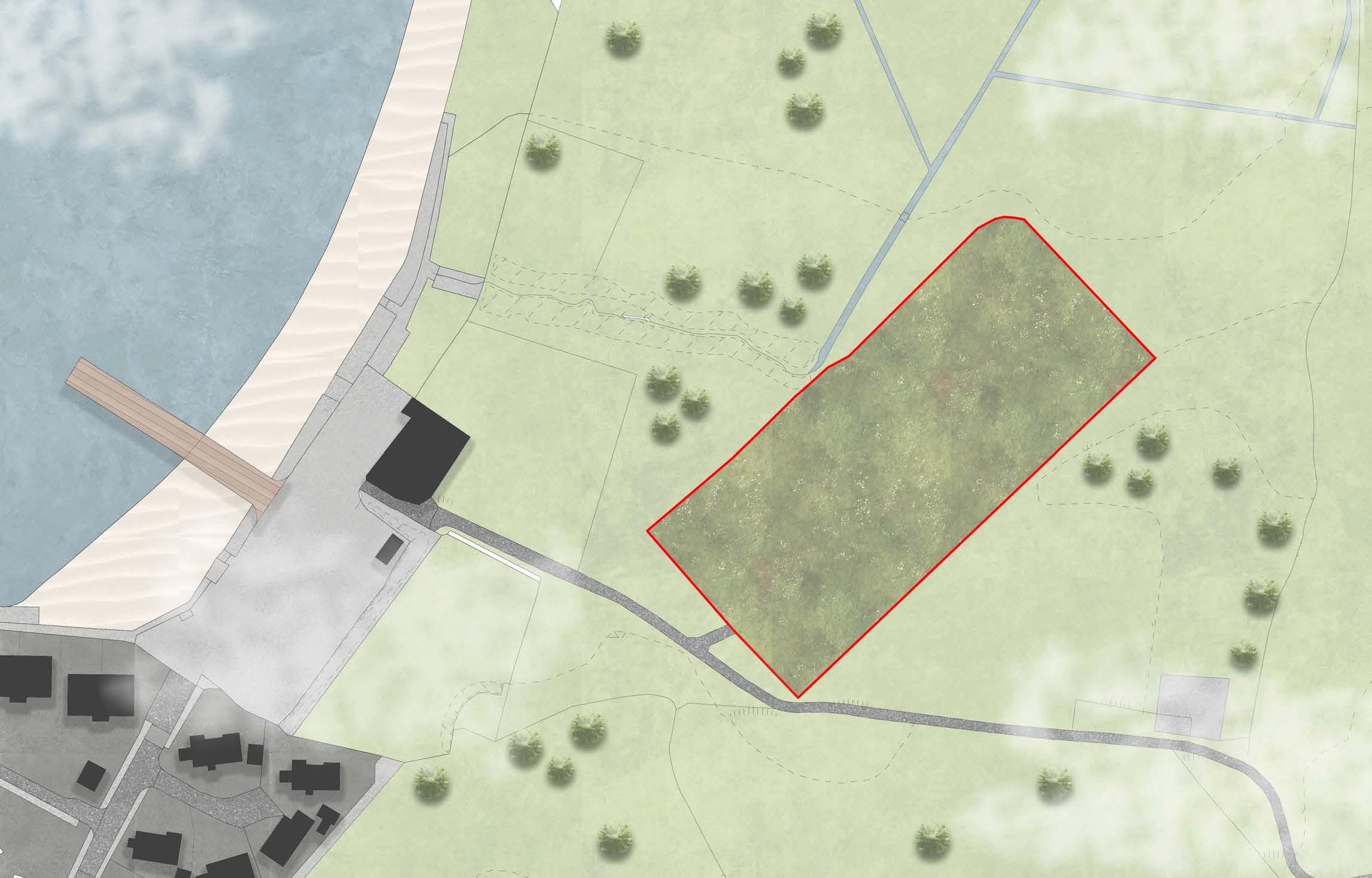 The site currently has an old farmhouse surrounded by grass and a stone wall separating the site from the surrounding roads. The site is planned to turn into 38 private residences by CALA Homes. I was given plot 12 to design.
