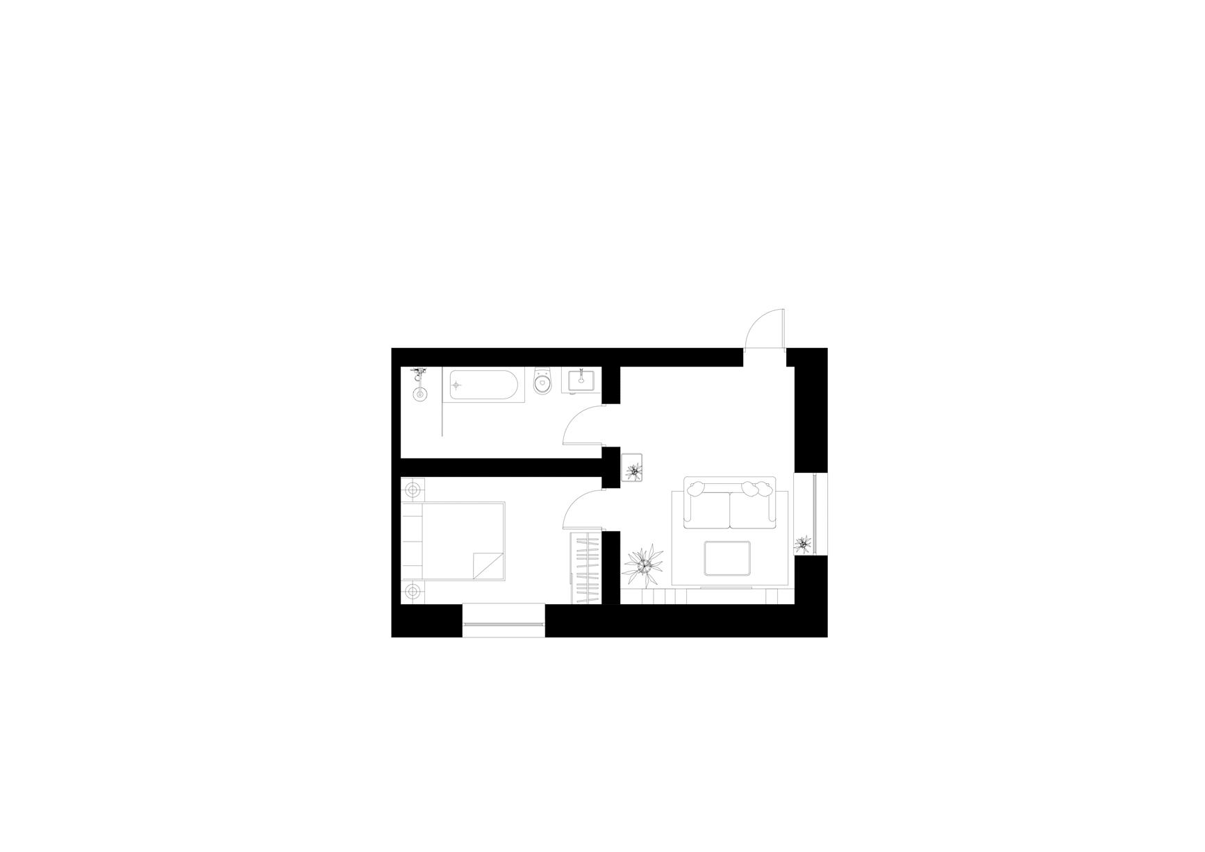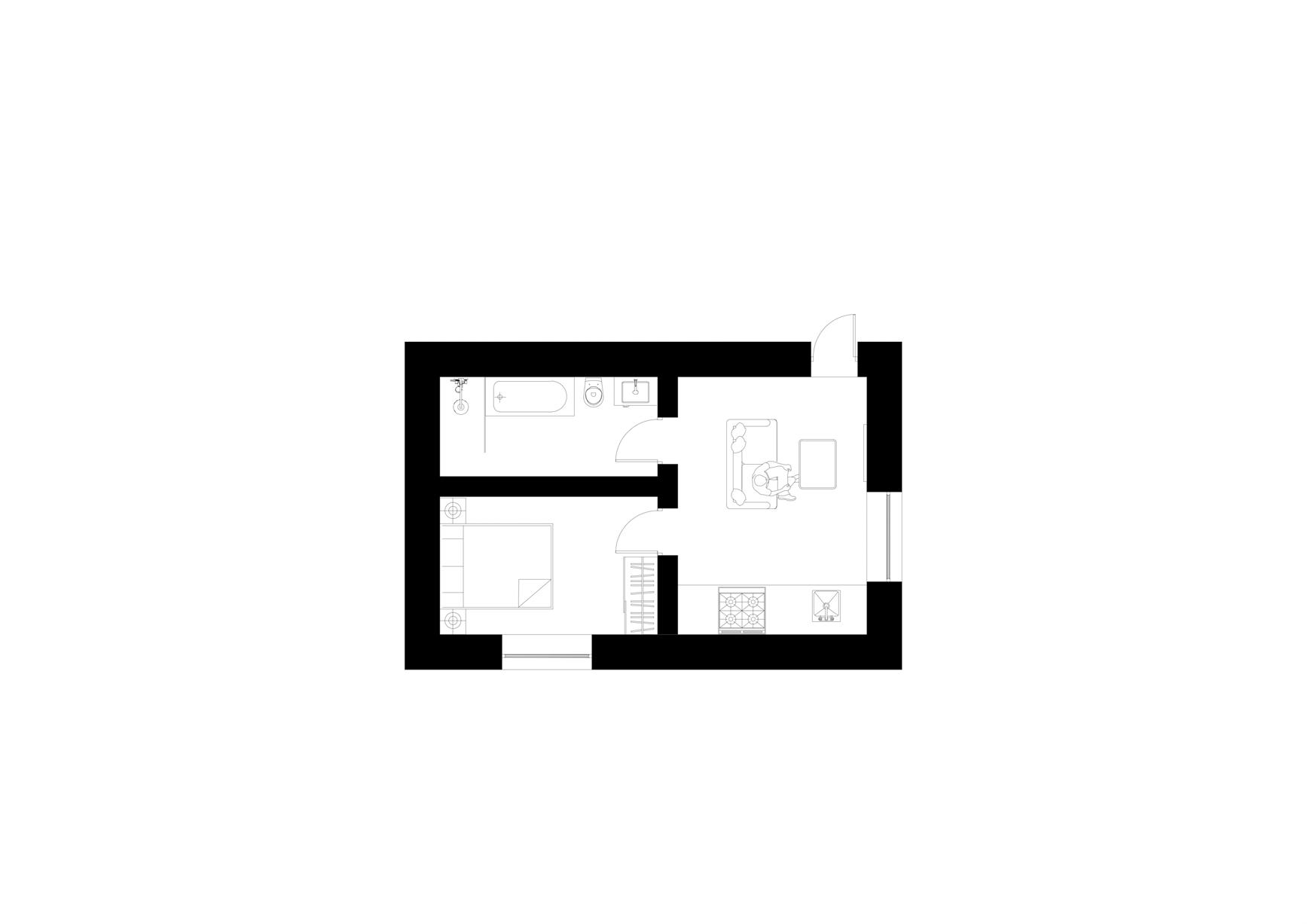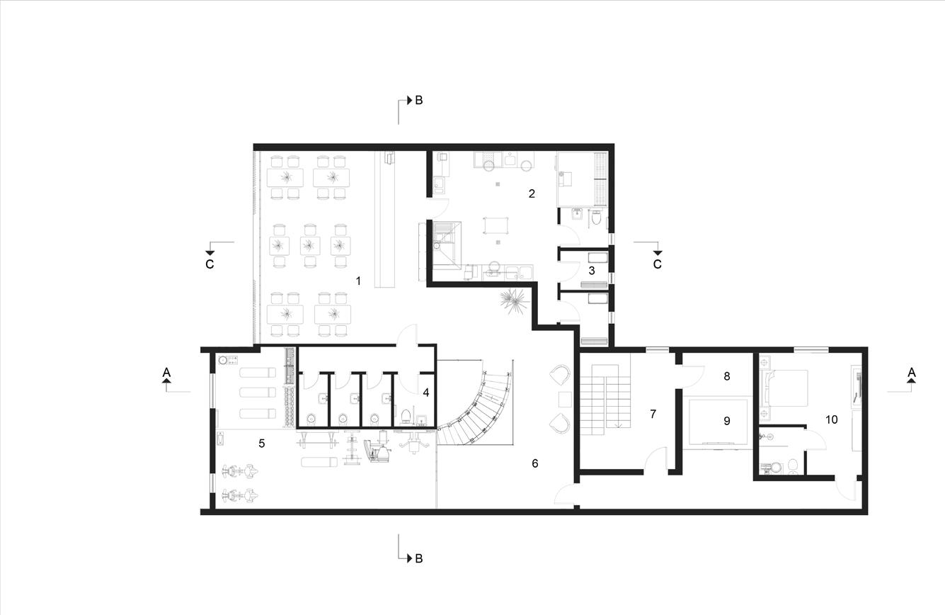 plan room areas: 1. Living room with kitchen