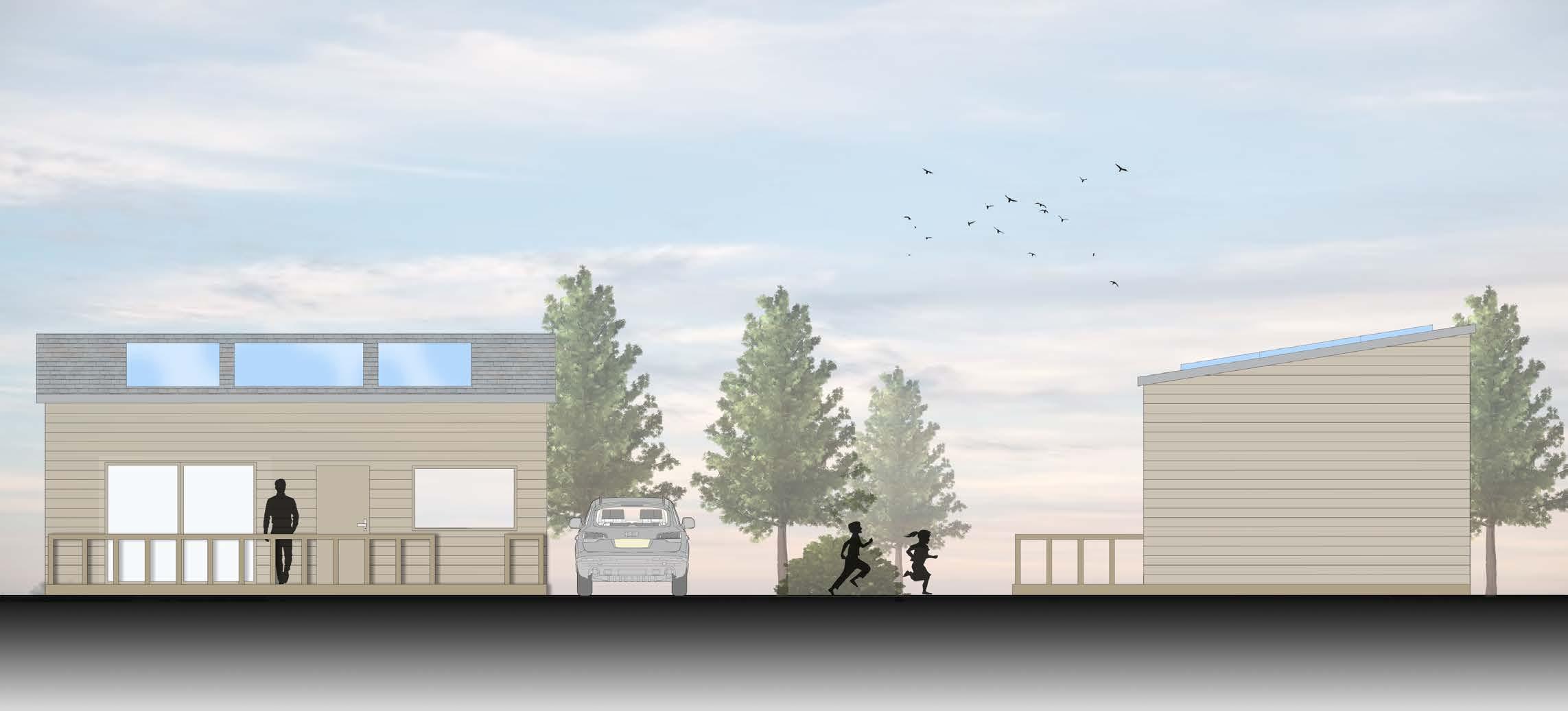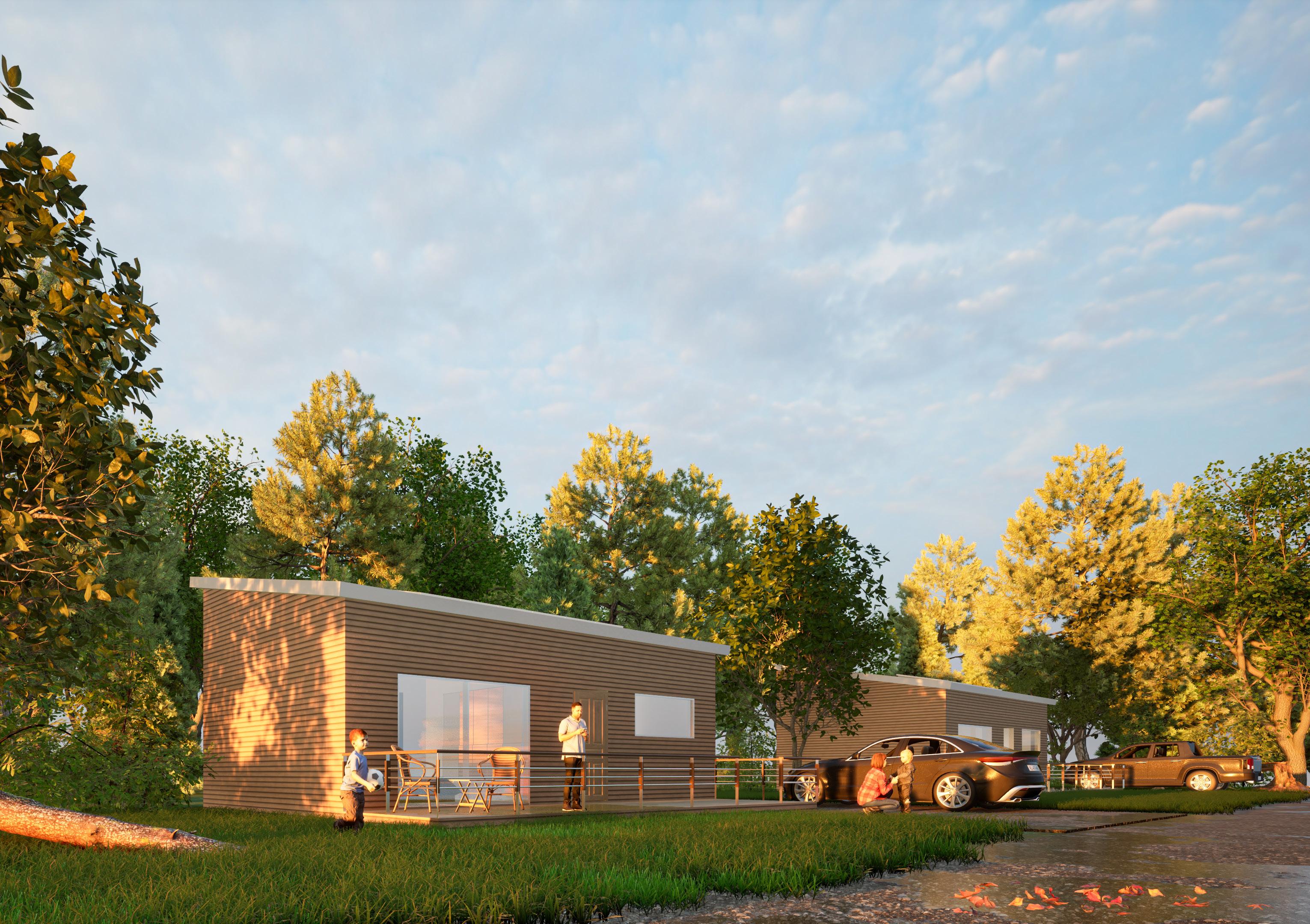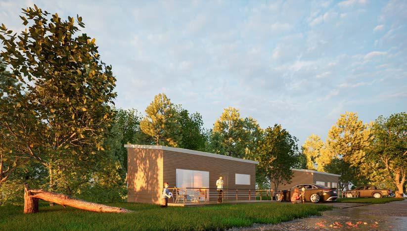 Additional projects can be produced from the use of modular pods. One option would be to create lodges by equipping one of the pods with a small kitchen in the living space. These modular lodges are intended as holiday homes or to be installed in camping resorts.