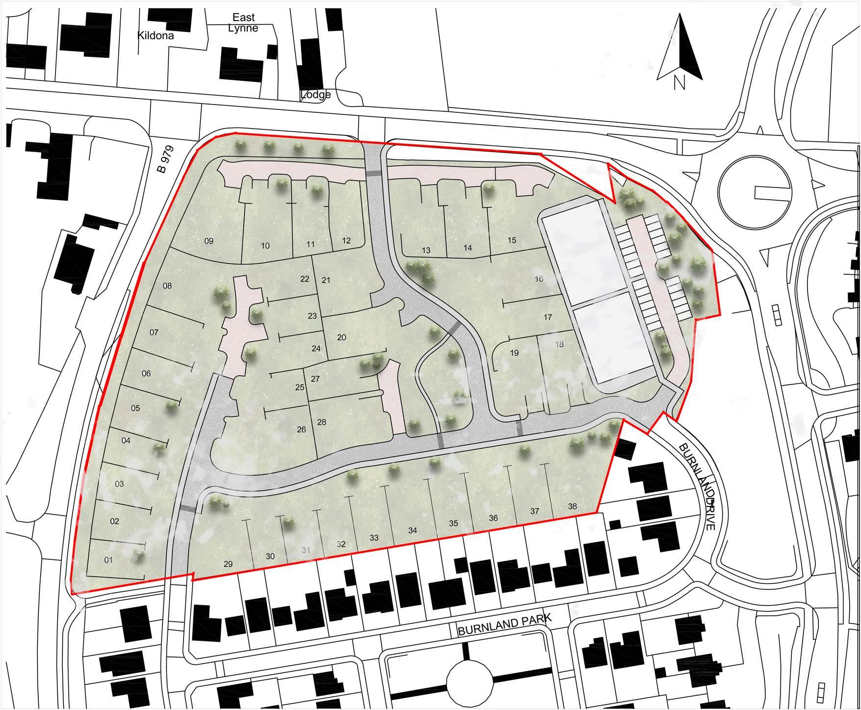 Aberdeenshire Council created a development plan in 2020 for Westhill where the Burnland housing development is included within. It is part of a wider development of 266 homes and the most recent one was finished in 2013.